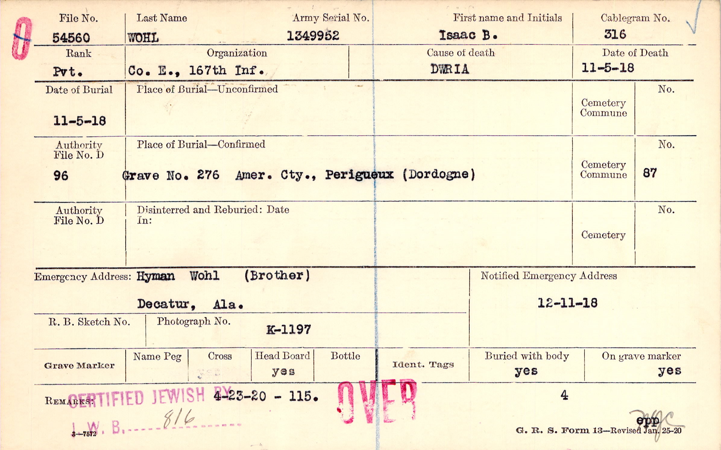 Grave 276, Amer. Cty., Perigueux, Dordogne.