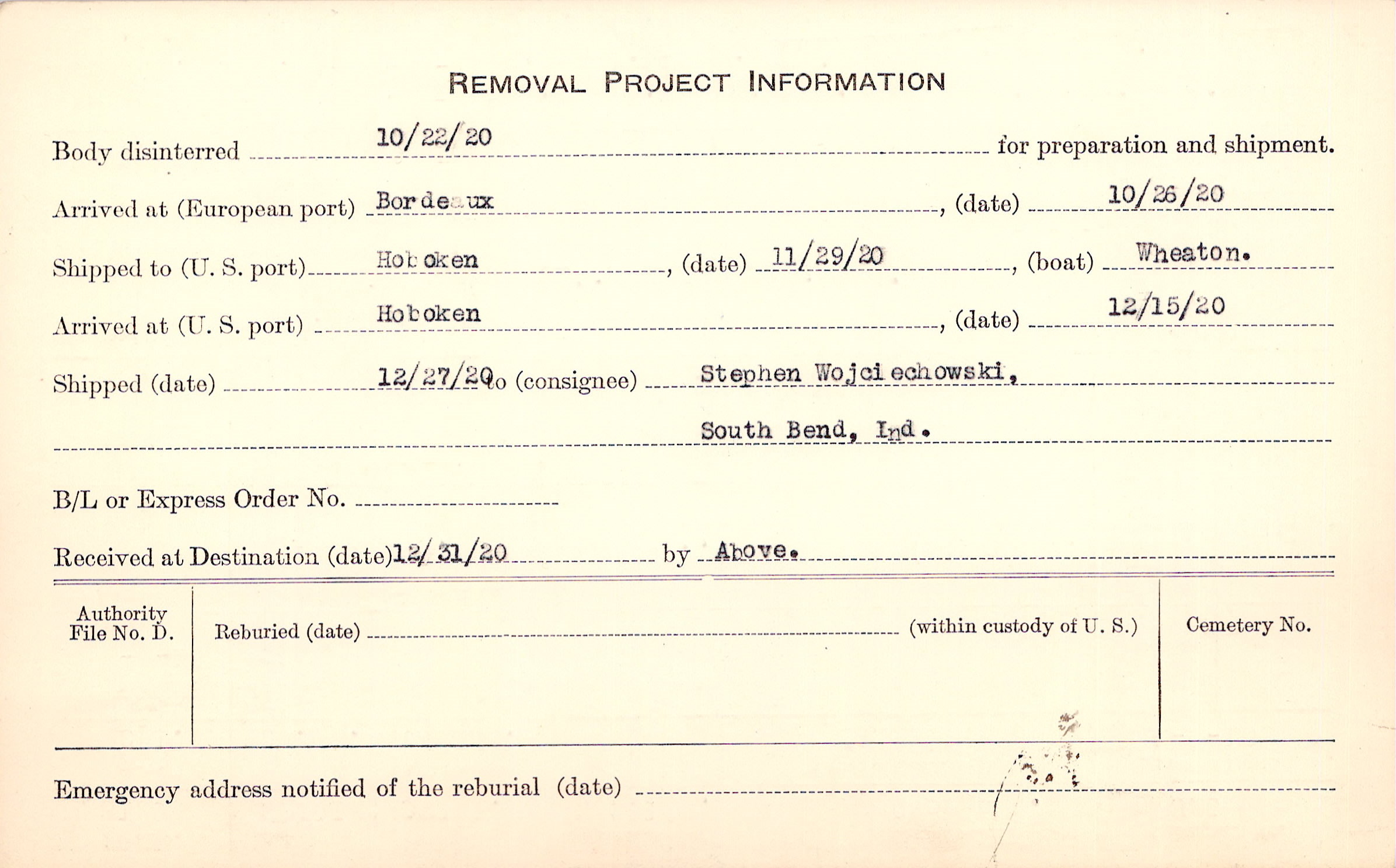 Mr. Stephen Wojciechowski, (Father), 442 S. Jackson St., South Bend, Ind.