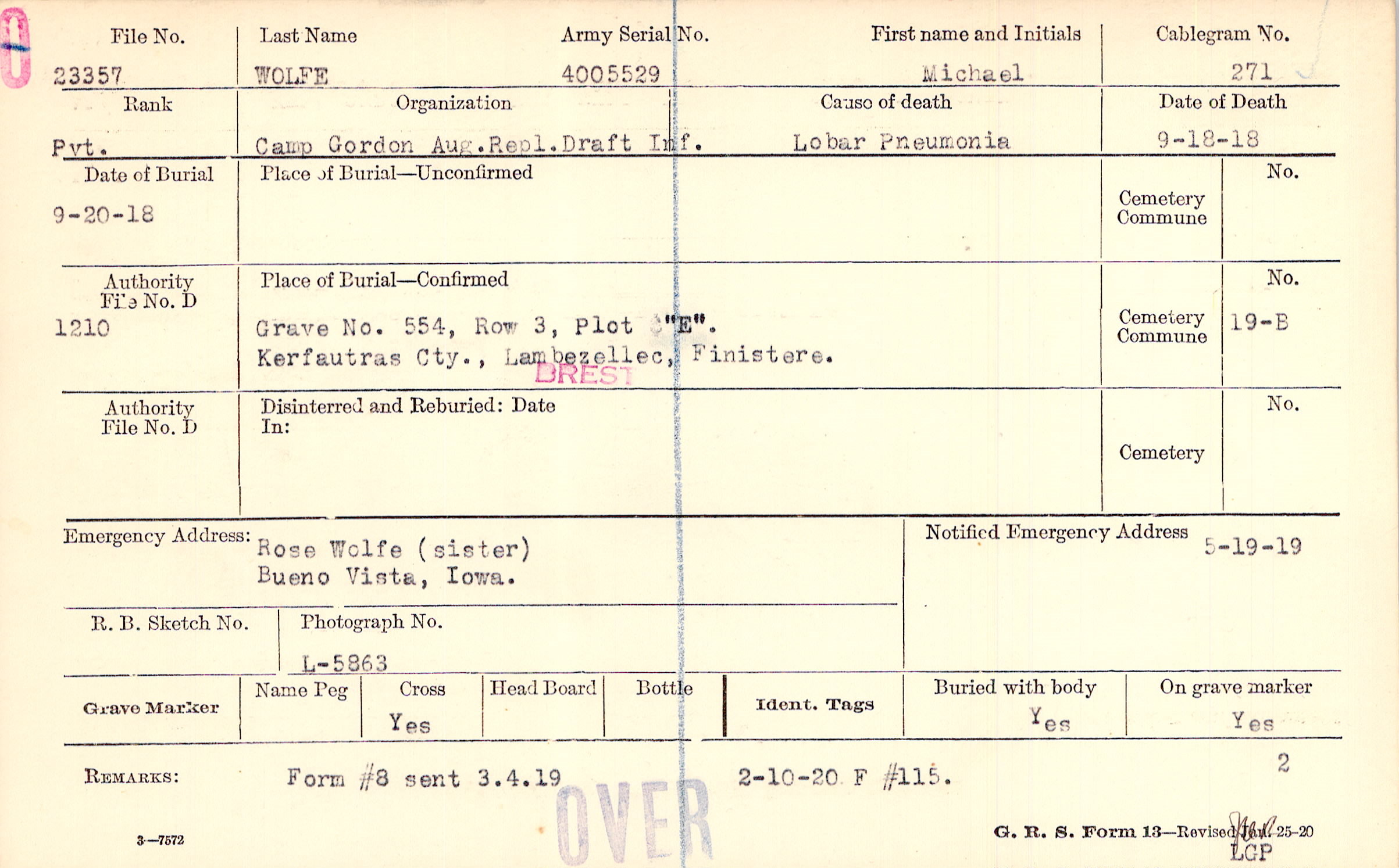 Grave 554, Row 3, Plot "E"., Kerfautras Cty., Lambezellec, Finistere.