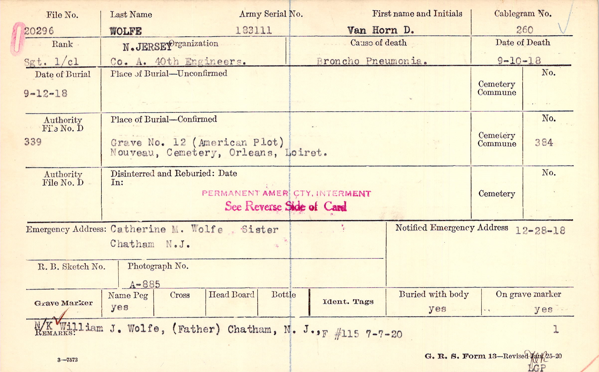 N/K William J. Wolfe, (Father) Chatham, N.J., F #115 7-7-20
