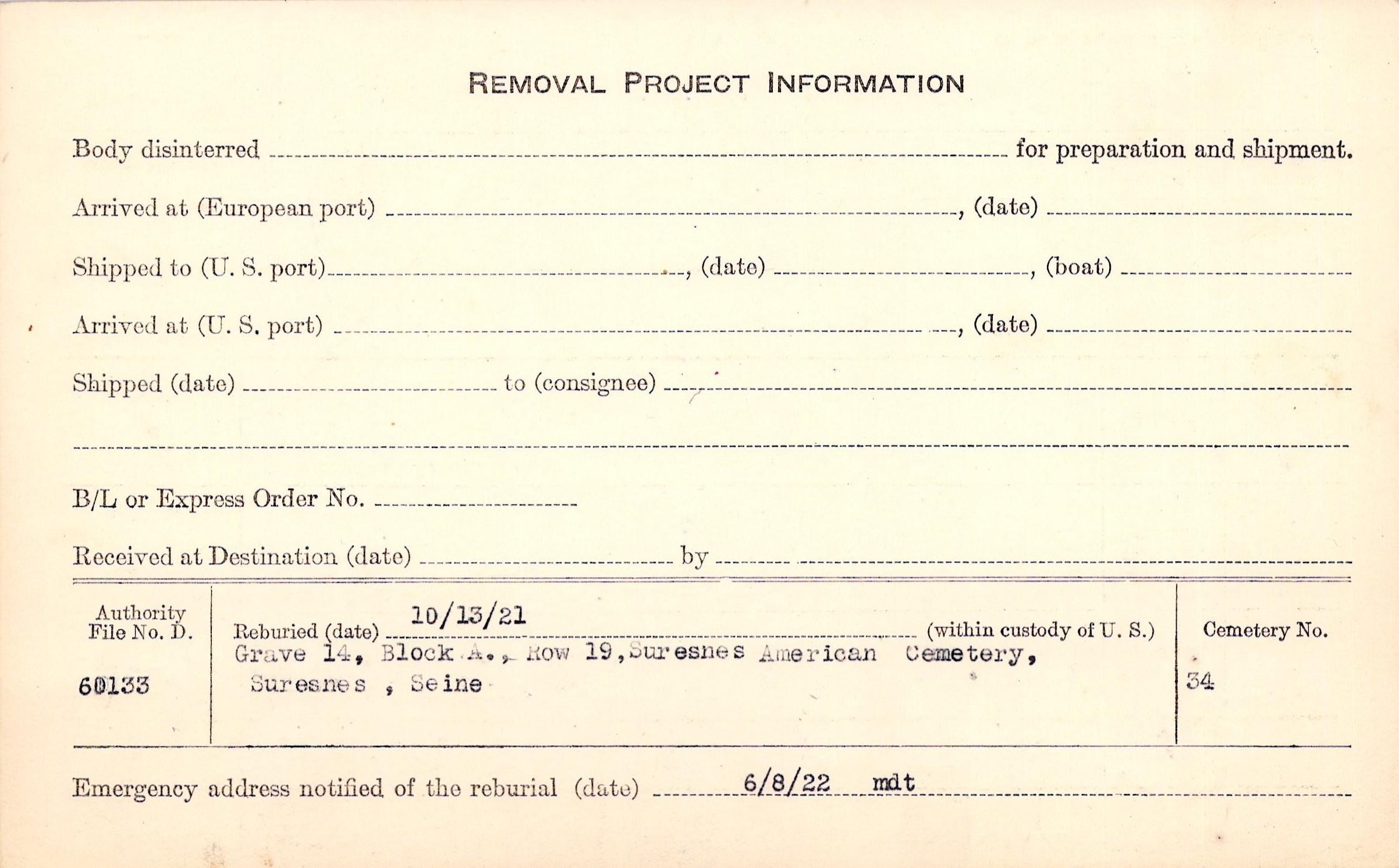 Grave 12 (American Plot), Nouveau, Cemetery, Orleans, Loiret.