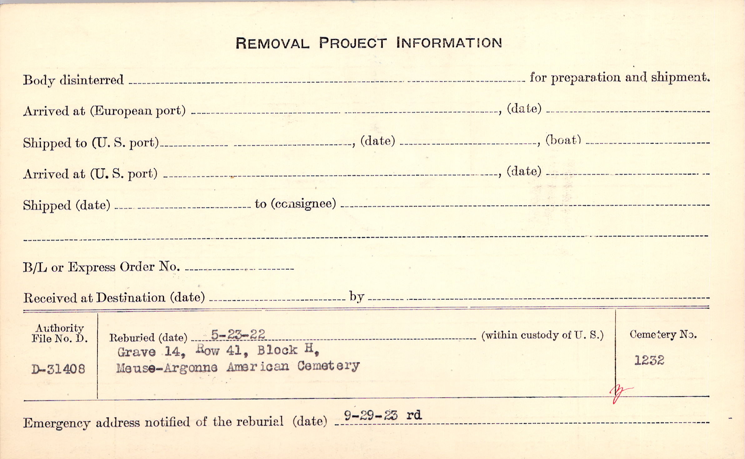 Grave 132, Section 91, Plot 3, Argonne American Cemetery, Romagne-sous-Montfaucon, Meuse
