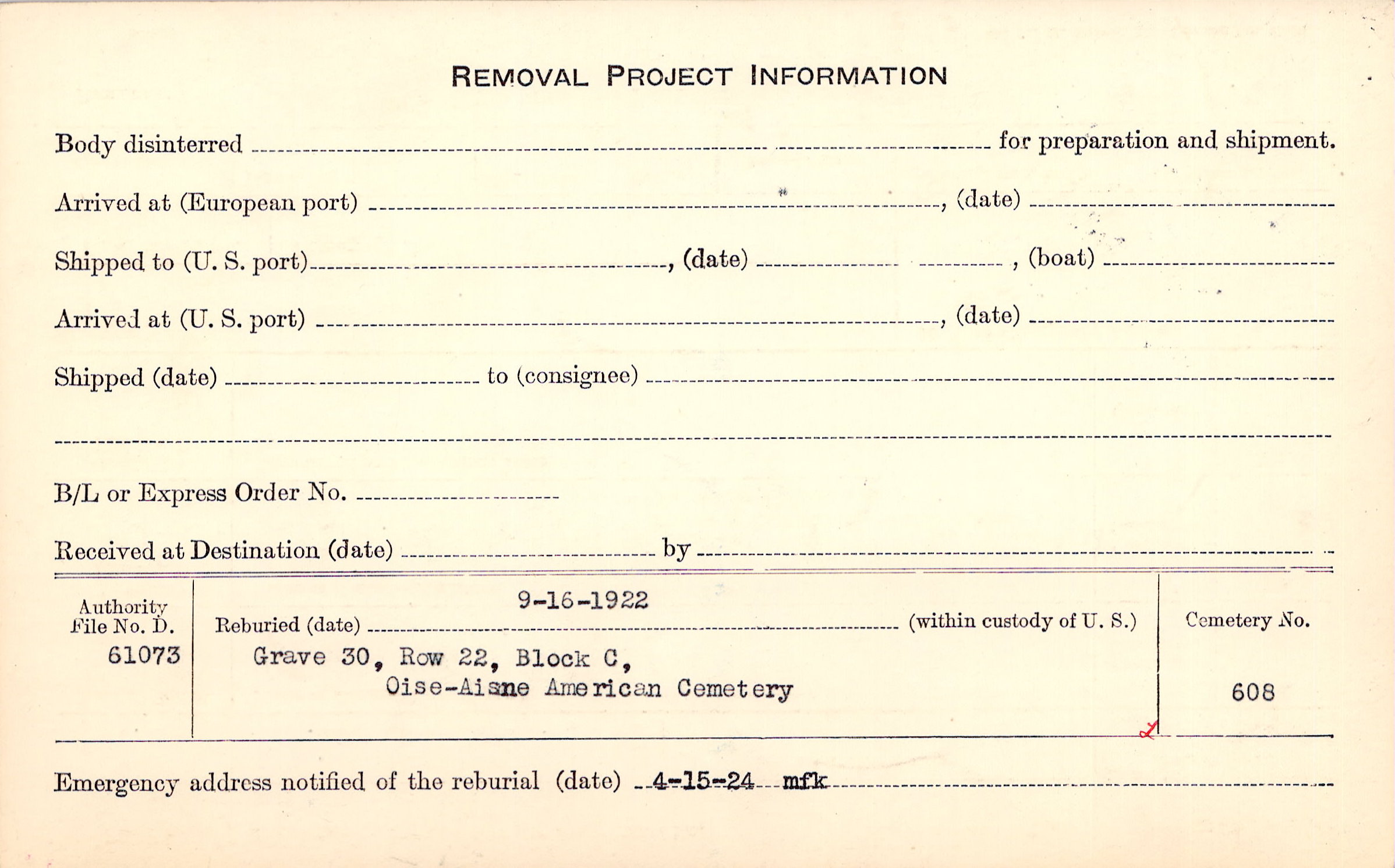 Grave no. 248, American Cemetery of Savenay, Loire Inferieure.