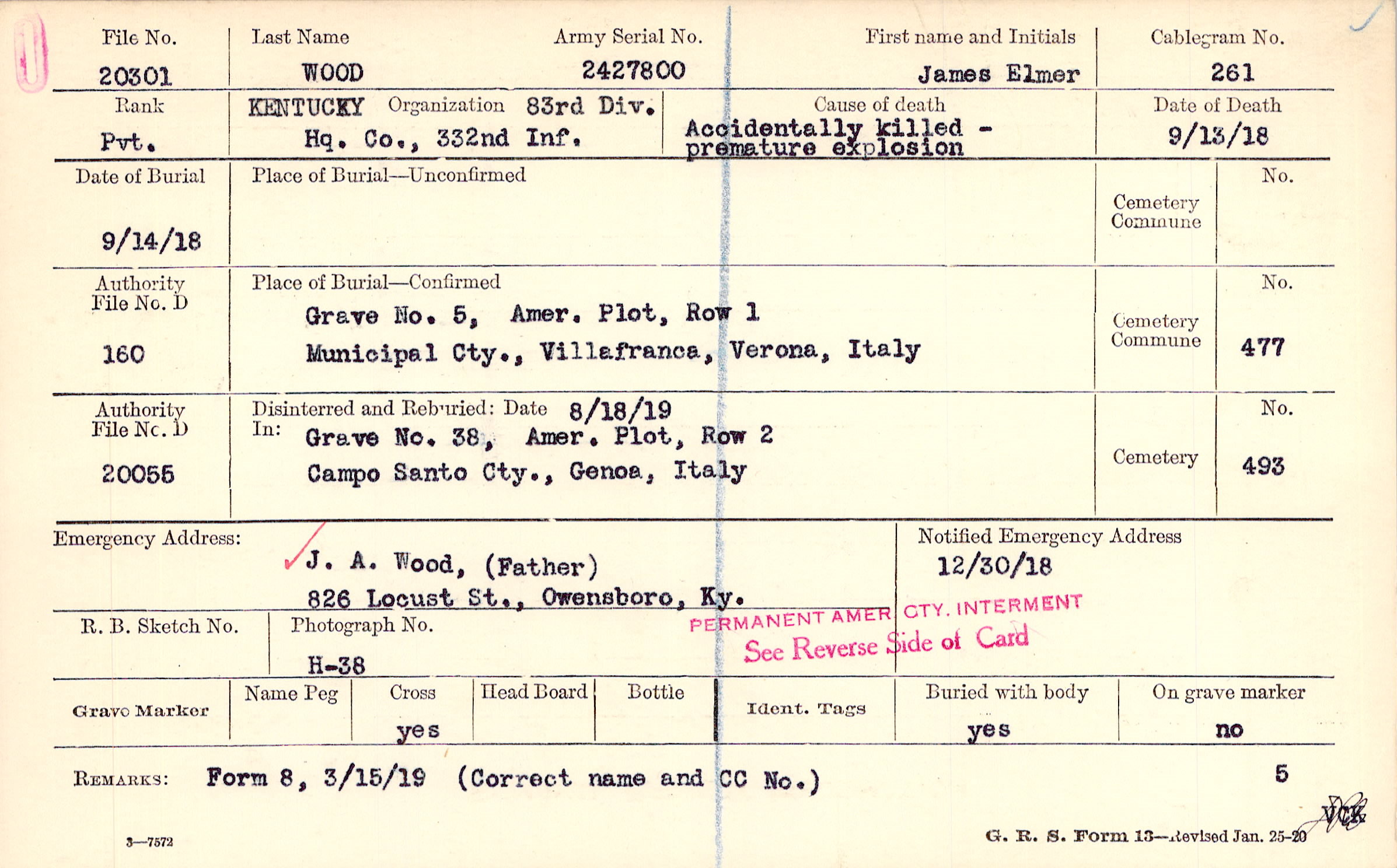 J. A. Wood, (Father), 826 Locust St., Owensboro, Ky.