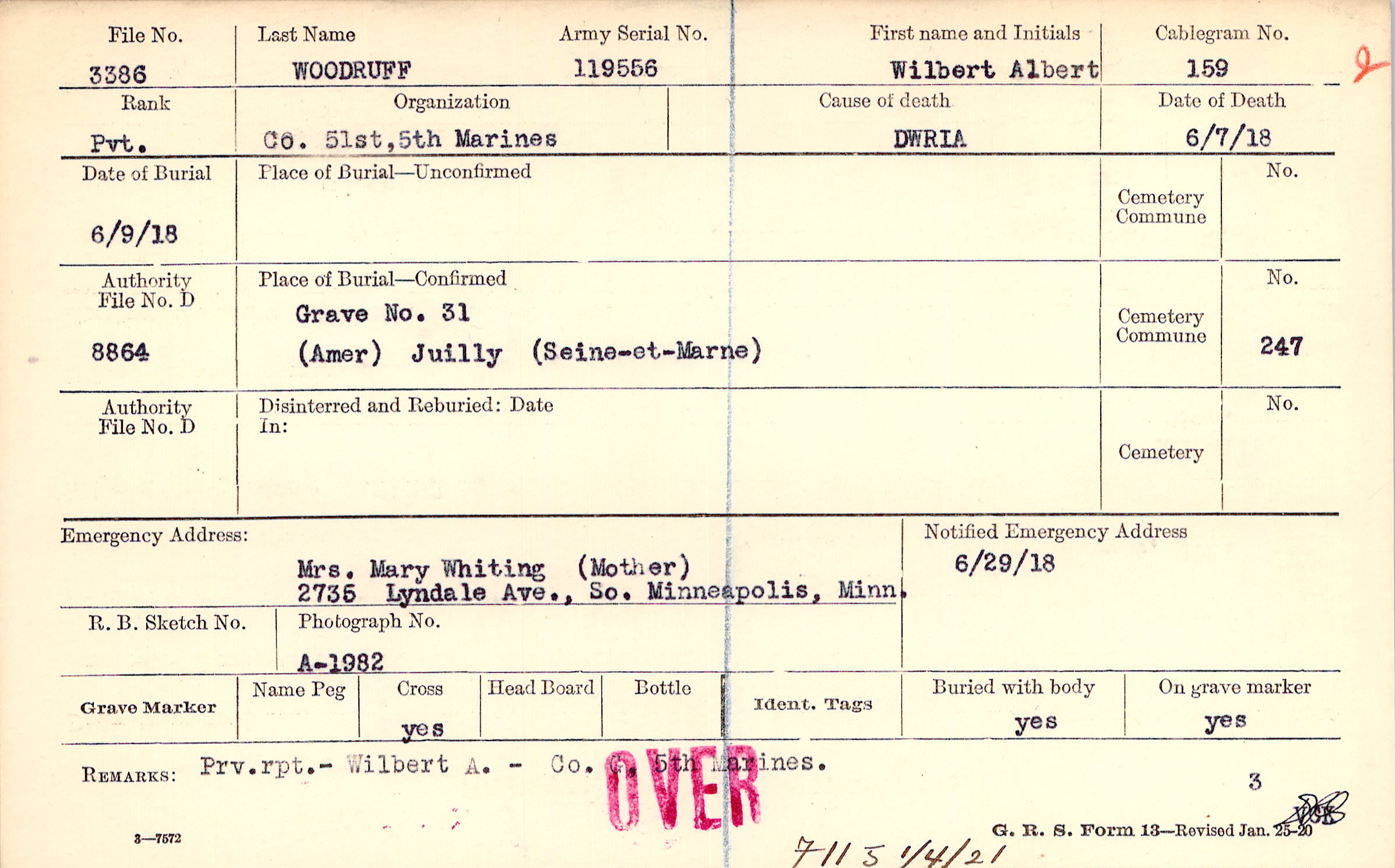 Prv.rpt. Wilbert A. - Co. G, 5th marines., F115 1/4/21