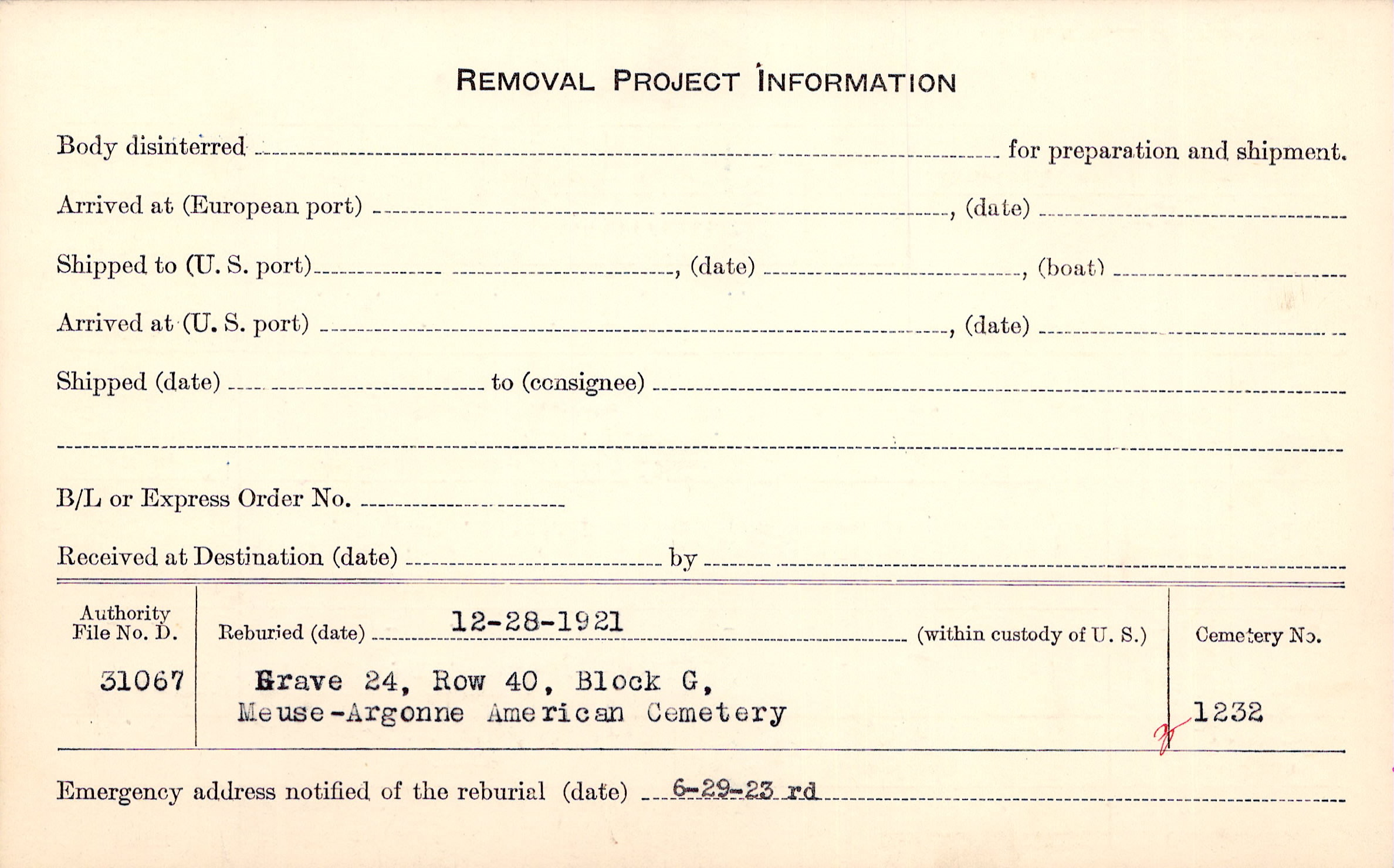 | Permanent Burial in Foreign Cemetery |