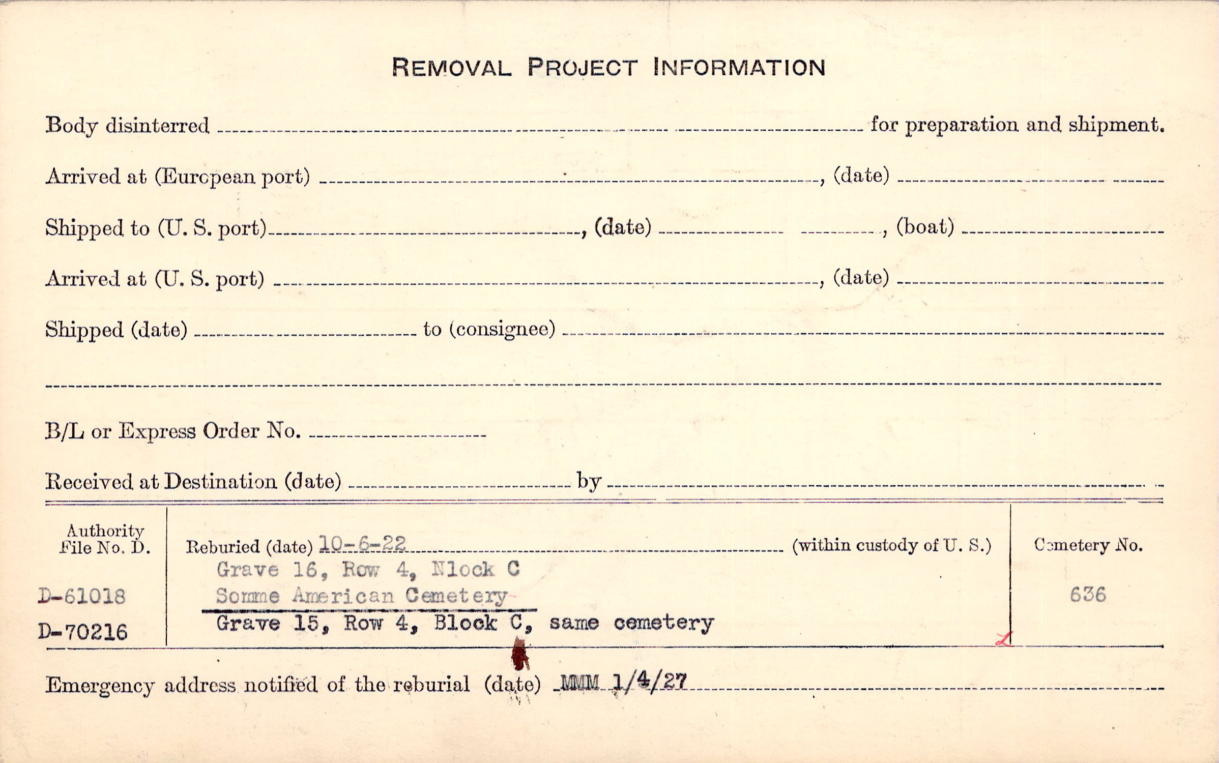 Prior Burial in Foreign Cemetery |