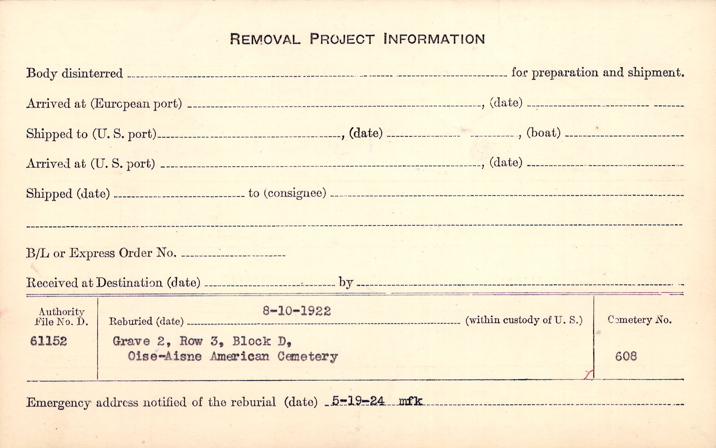 Grave 21,American Battle Area Cemetery, Juvigny, Aisne.