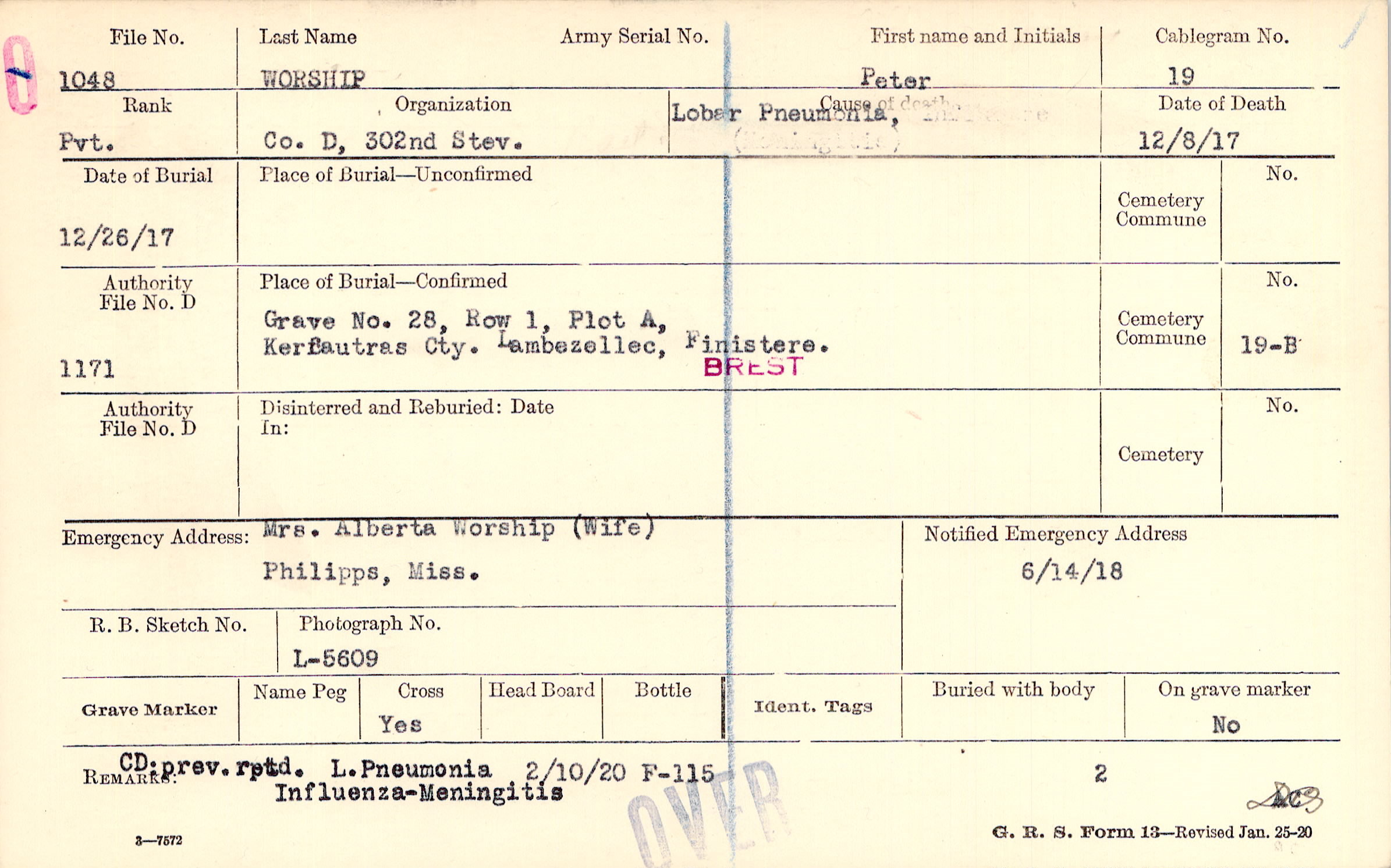 Grave 28, Row 1, Plot A, Kerfautras Cty., Lambezellec, Finistere.
