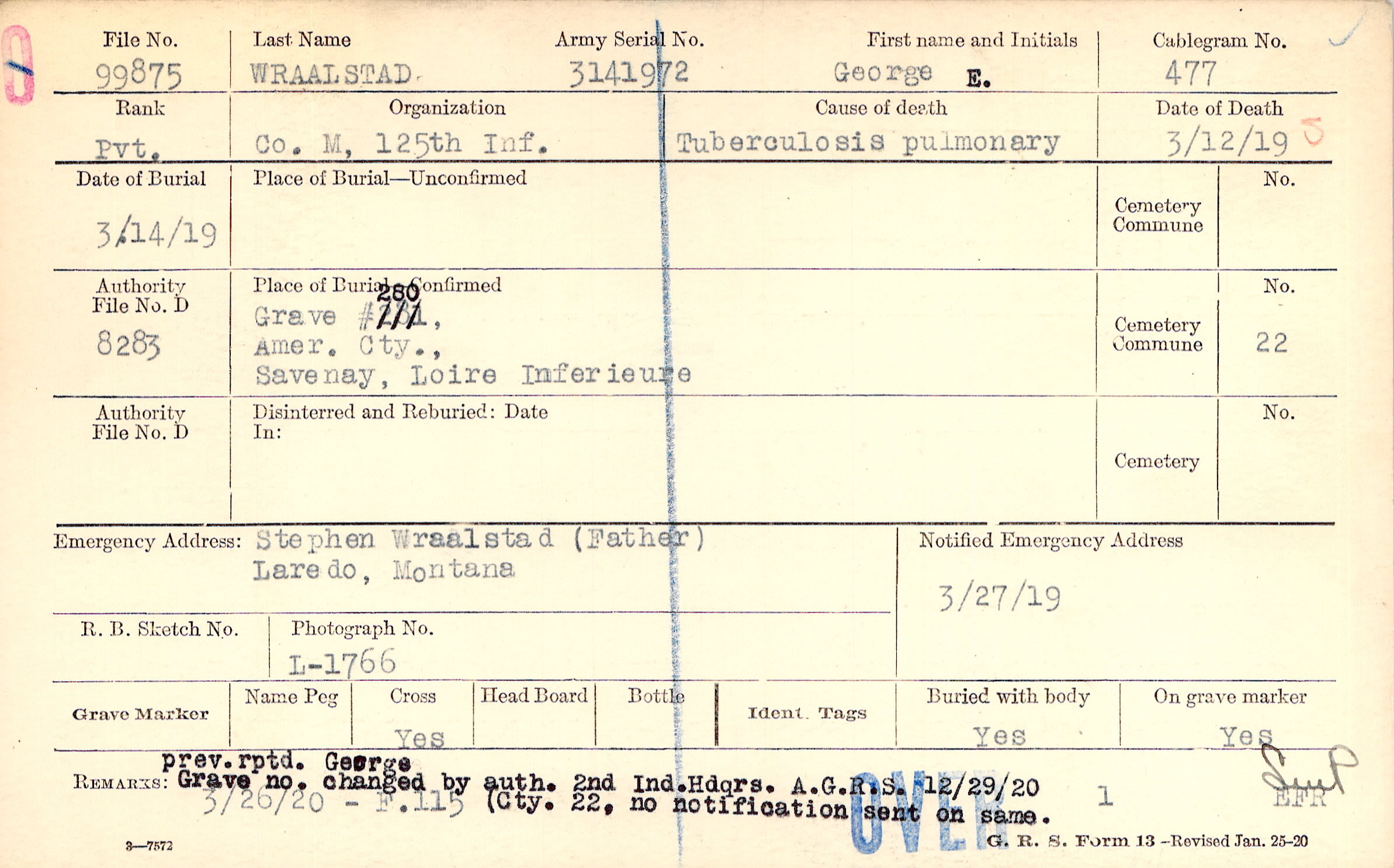 prev.rptd. George Grave no. changed by auth. 2nd Ind.Hdqrs. A.G.R.S. 12/29/20 (Cty. 22, no notification sent on same., 3/26/20 - F.115