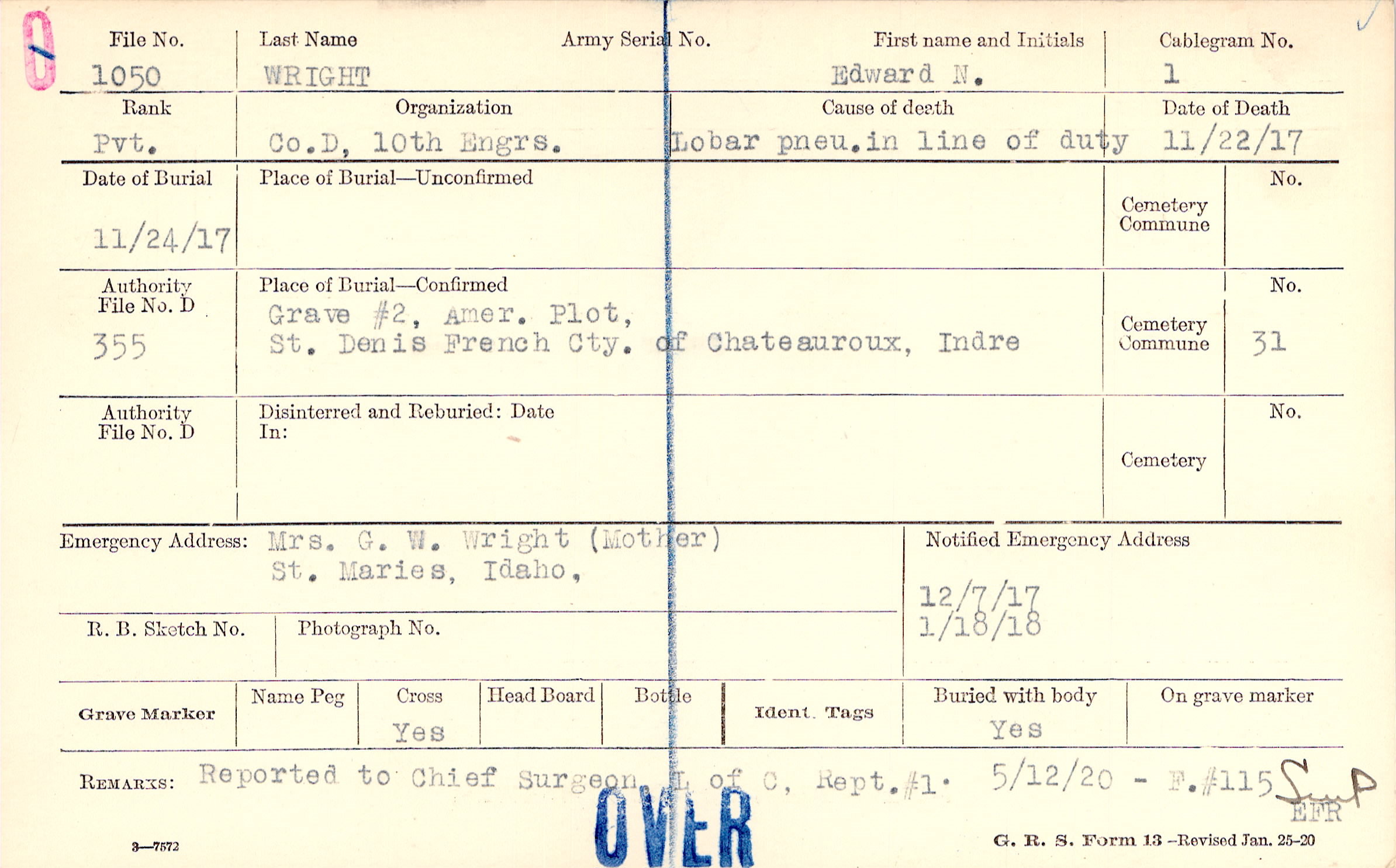 Mrs. G. W. Wright (Mother), St. Maries , Idaho,