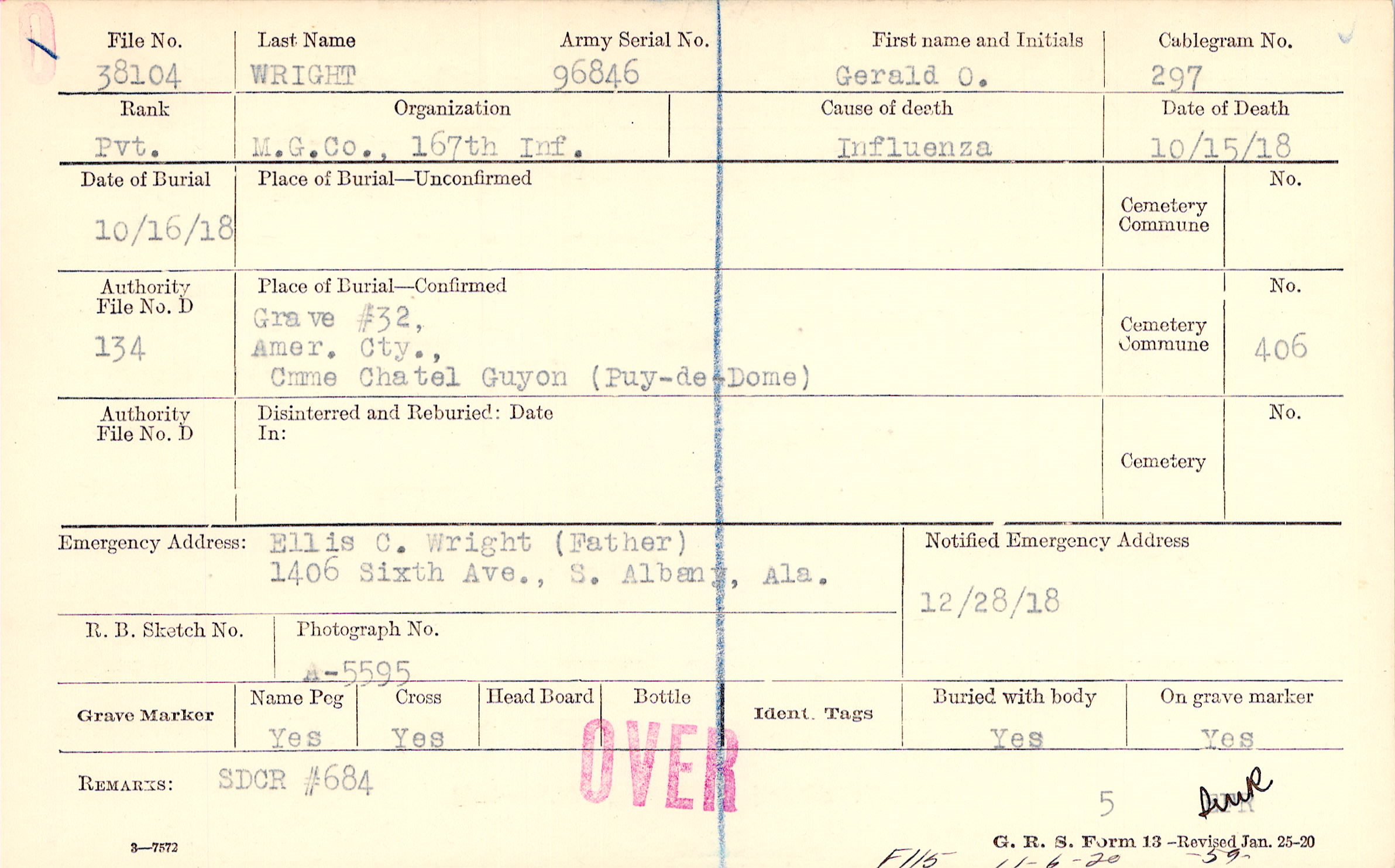 Grave #32, Amer. Cty., Cmme Chatel Guyon, Puy-de-Dome