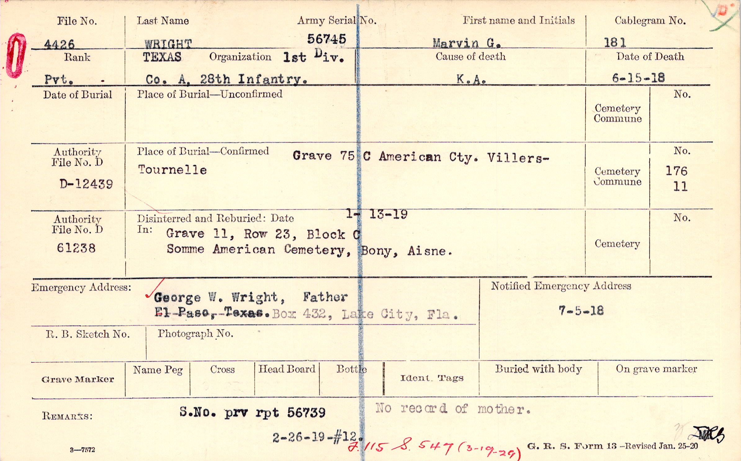 George W. Wright, Father, Box 432, Lake City, Fla.