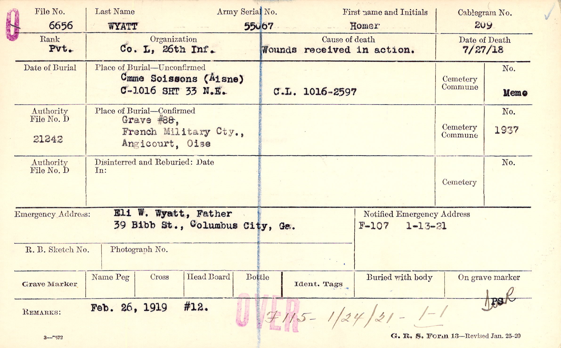 Eli W. Wyatt, Father, 39 Bibb St., Columbus City, Ga.