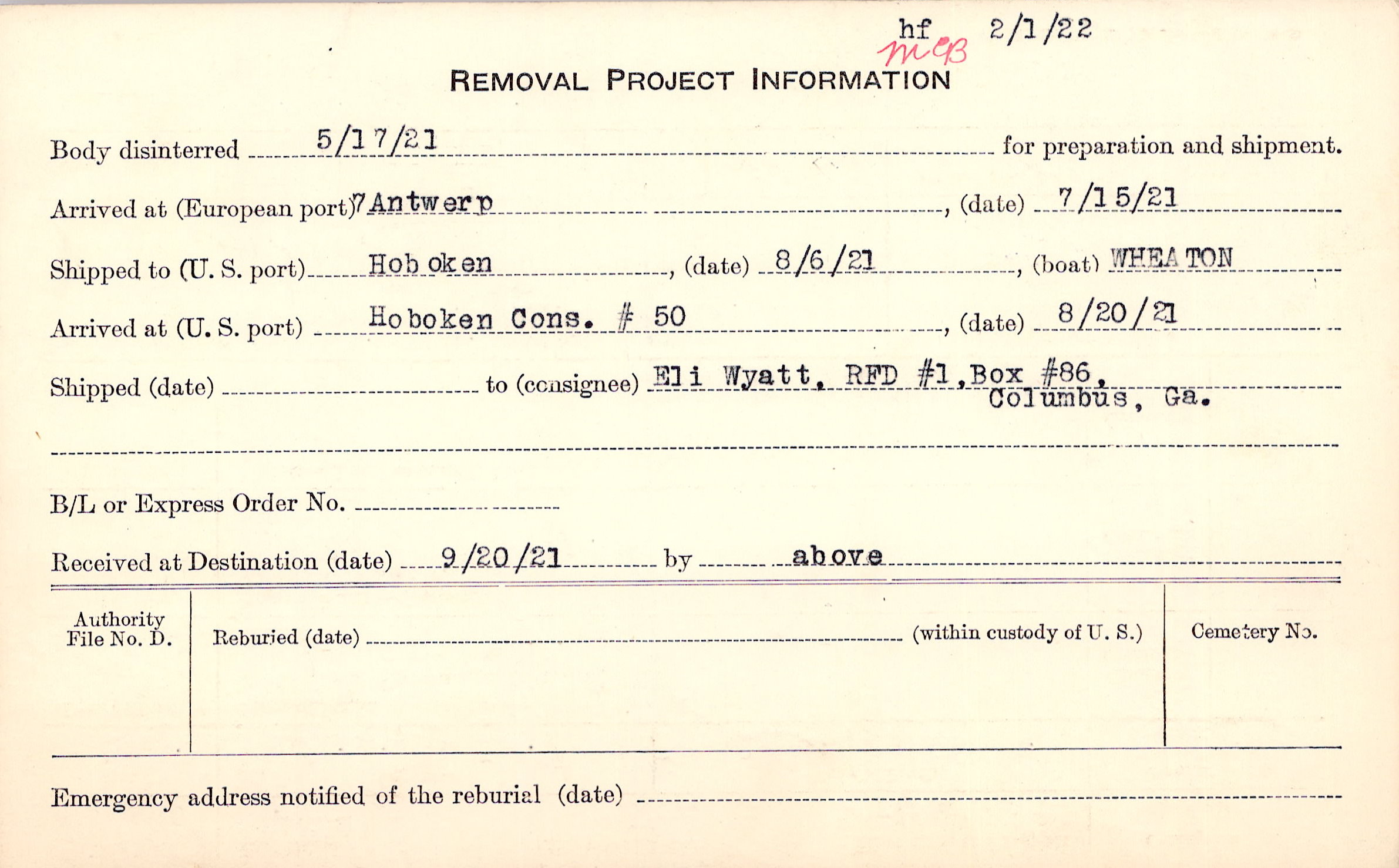 to Eli Wyatt, RFD #1, Box #86, Columbus, Ga.