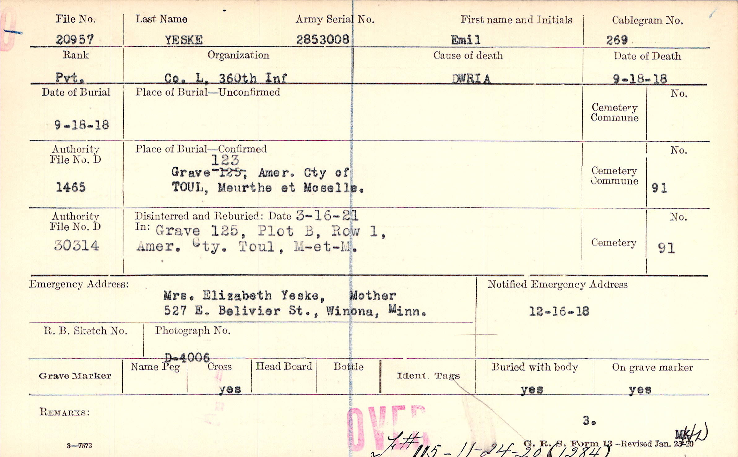 Grave 123, Amer. Cty., of Toul, Meurthe et Moselle