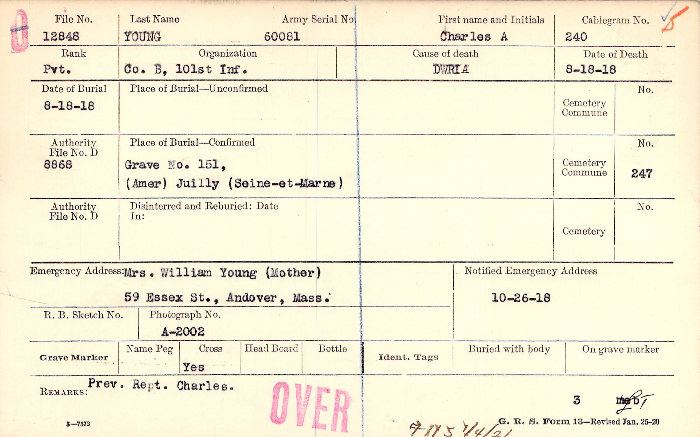 Mrs. William Young (Mother), 59 Essex St., Andover, Mass.