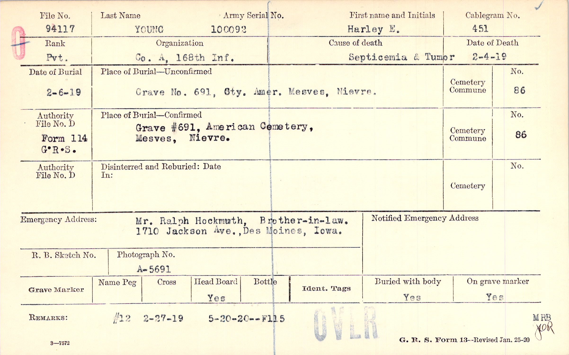 Grave No. 691, Cty., Amer., Mesves, Nievre.