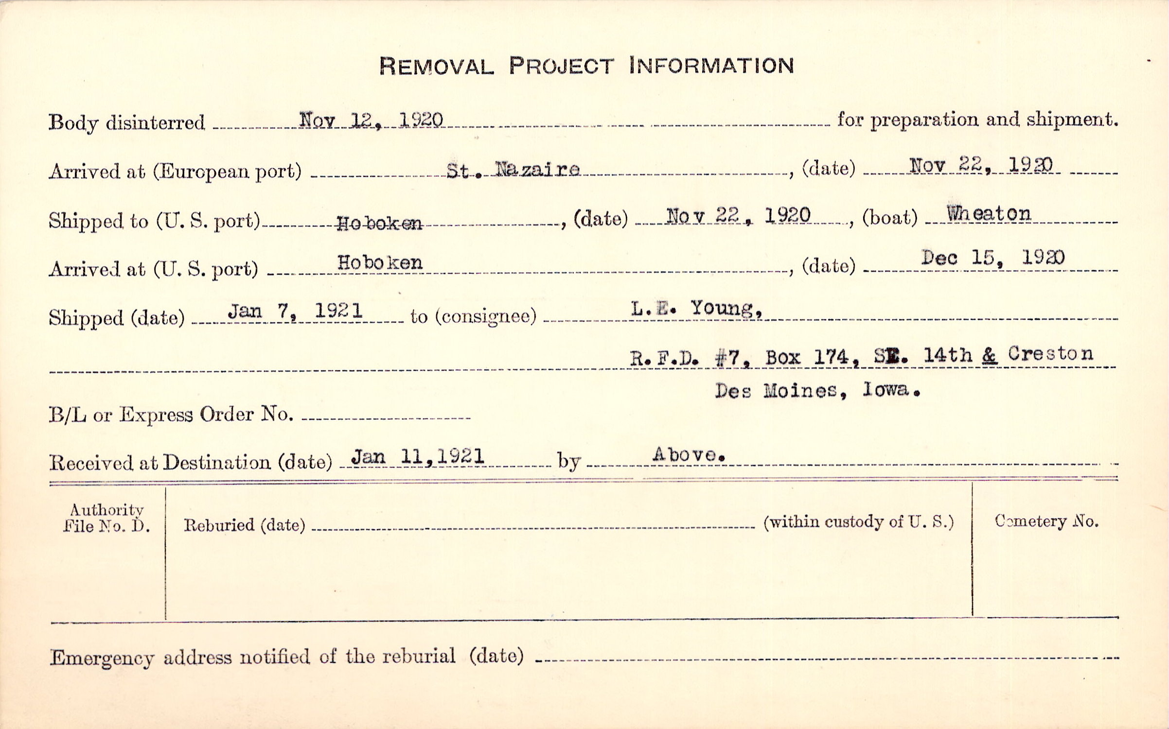 Mr. Ralph Hockmuth, Brother -in-law., 1710 Jackson Ave., Des Moines, Iowa.