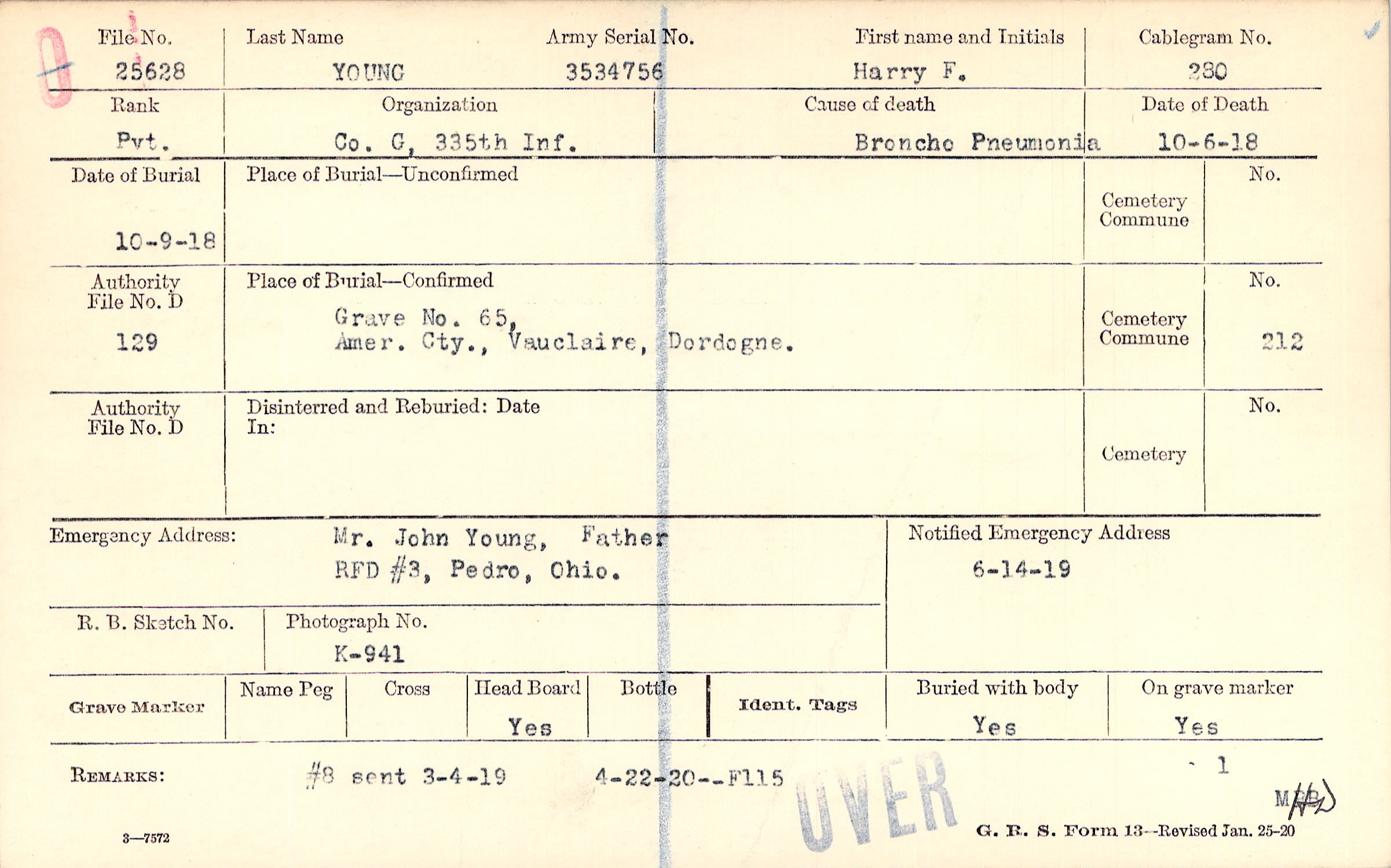 Mr. John Young, Father, RFD #3, Pedro, Ohio.