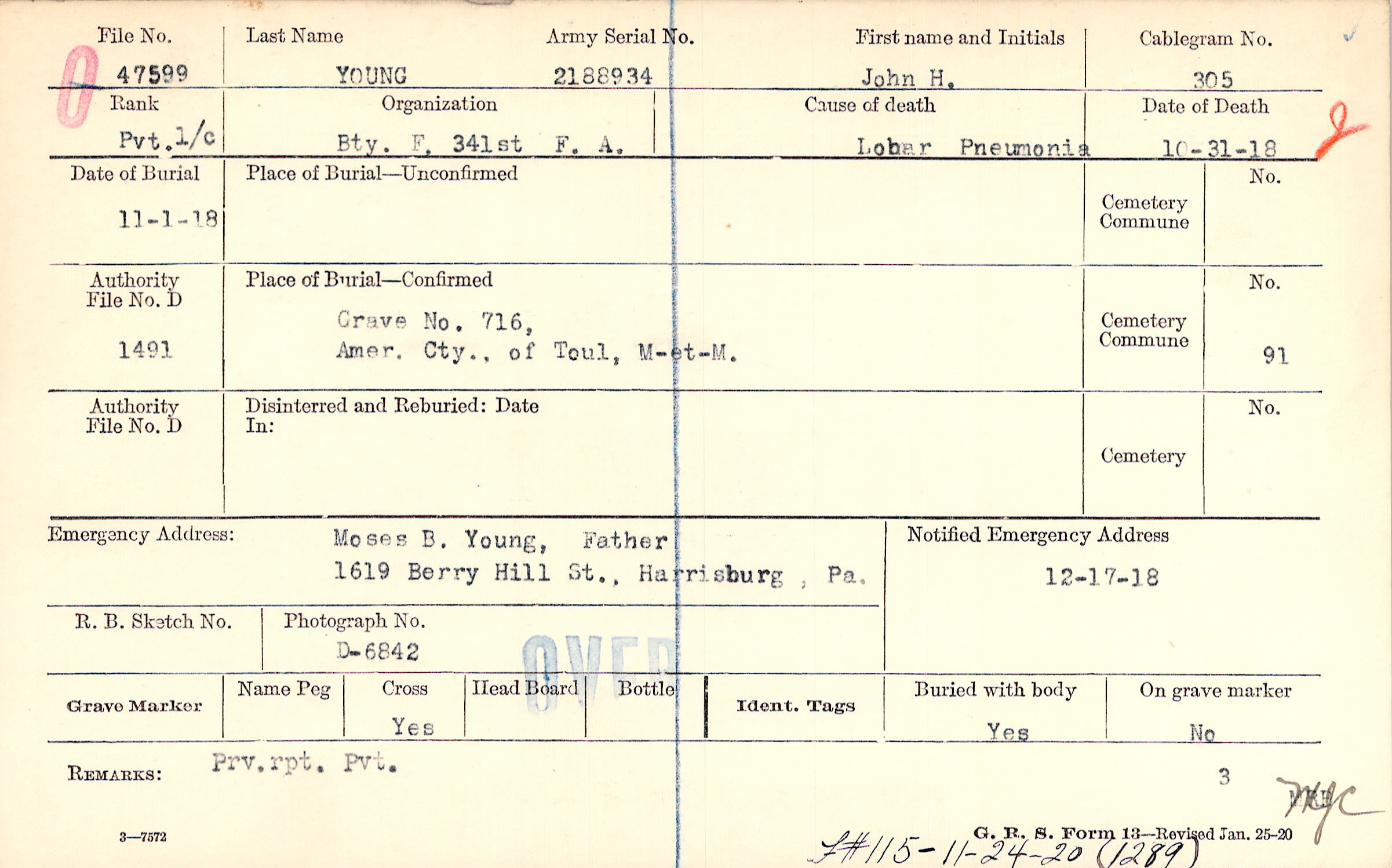 Grave 716, Amer. Cty., of Toul, M-et-M.