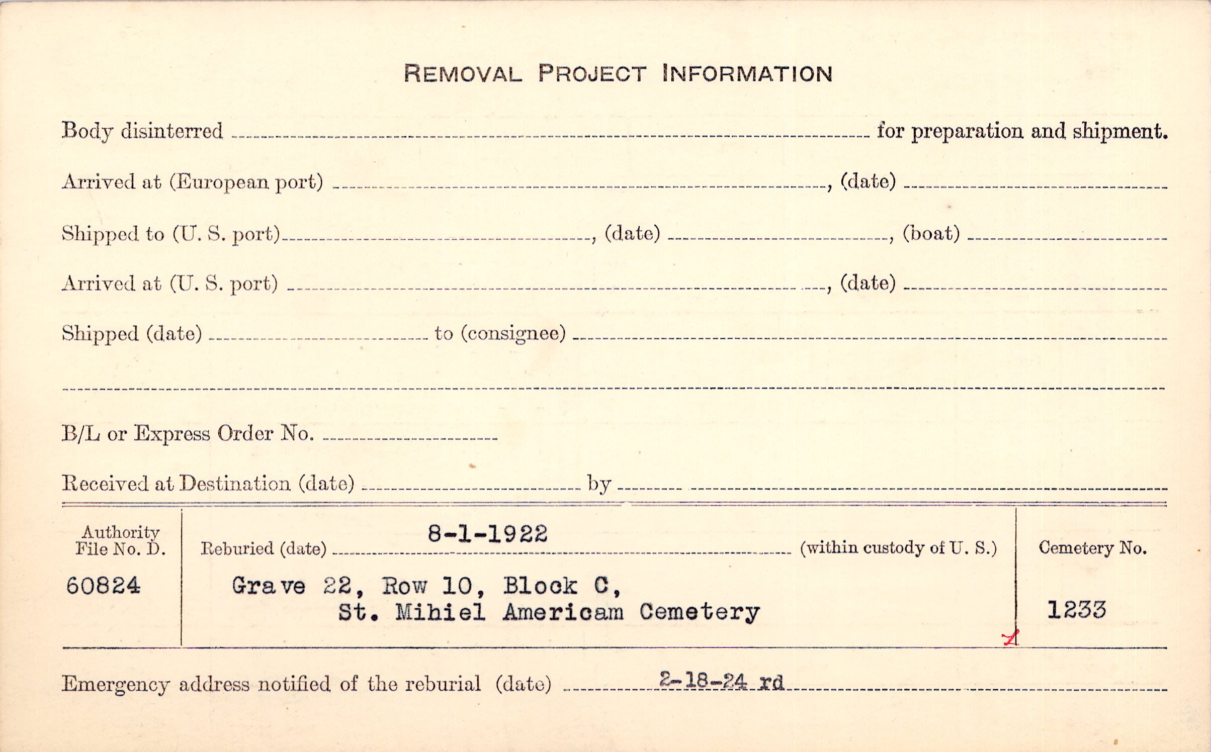 | Permanent Burial in Foreign Cemetery |