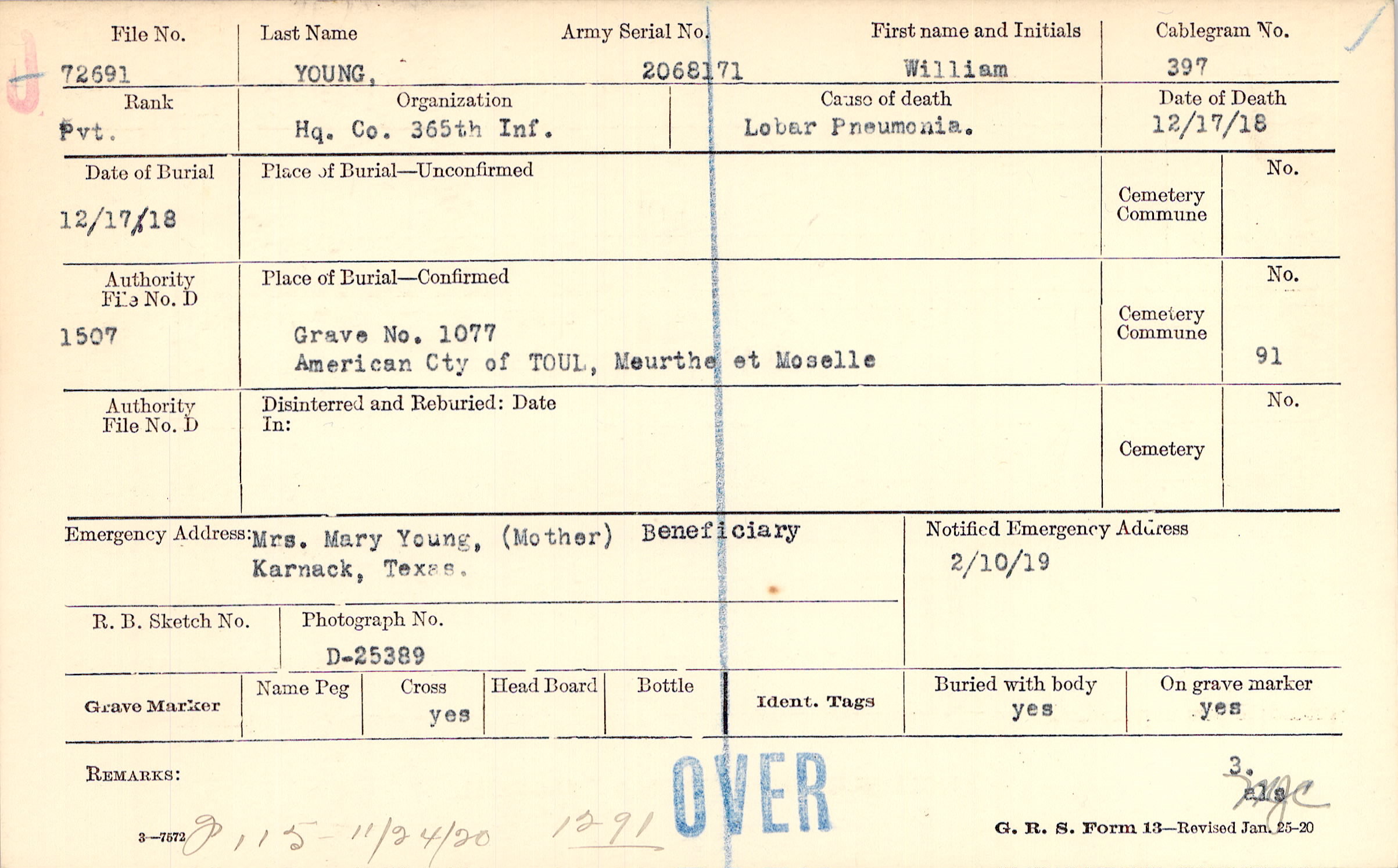 Grave 1077, American Cty of Toul, Meurthe et moselle