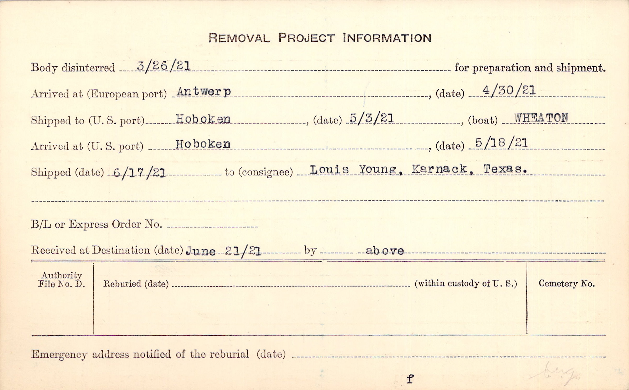 Mrs. Mary Young, (Mother) Beneficiary, Karnack, Texas., Beneficiary