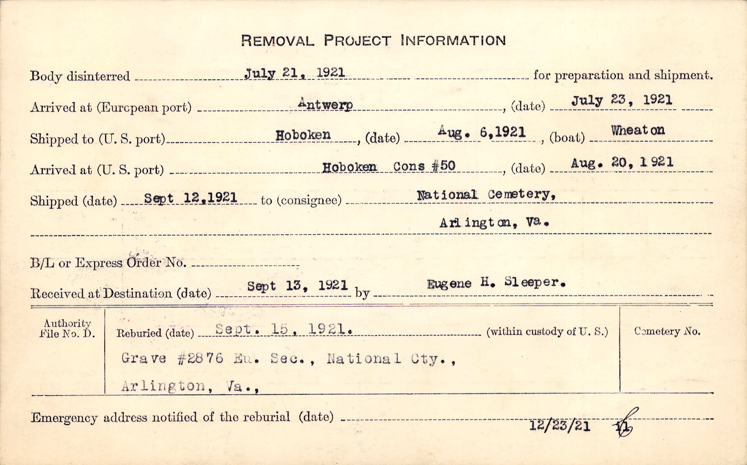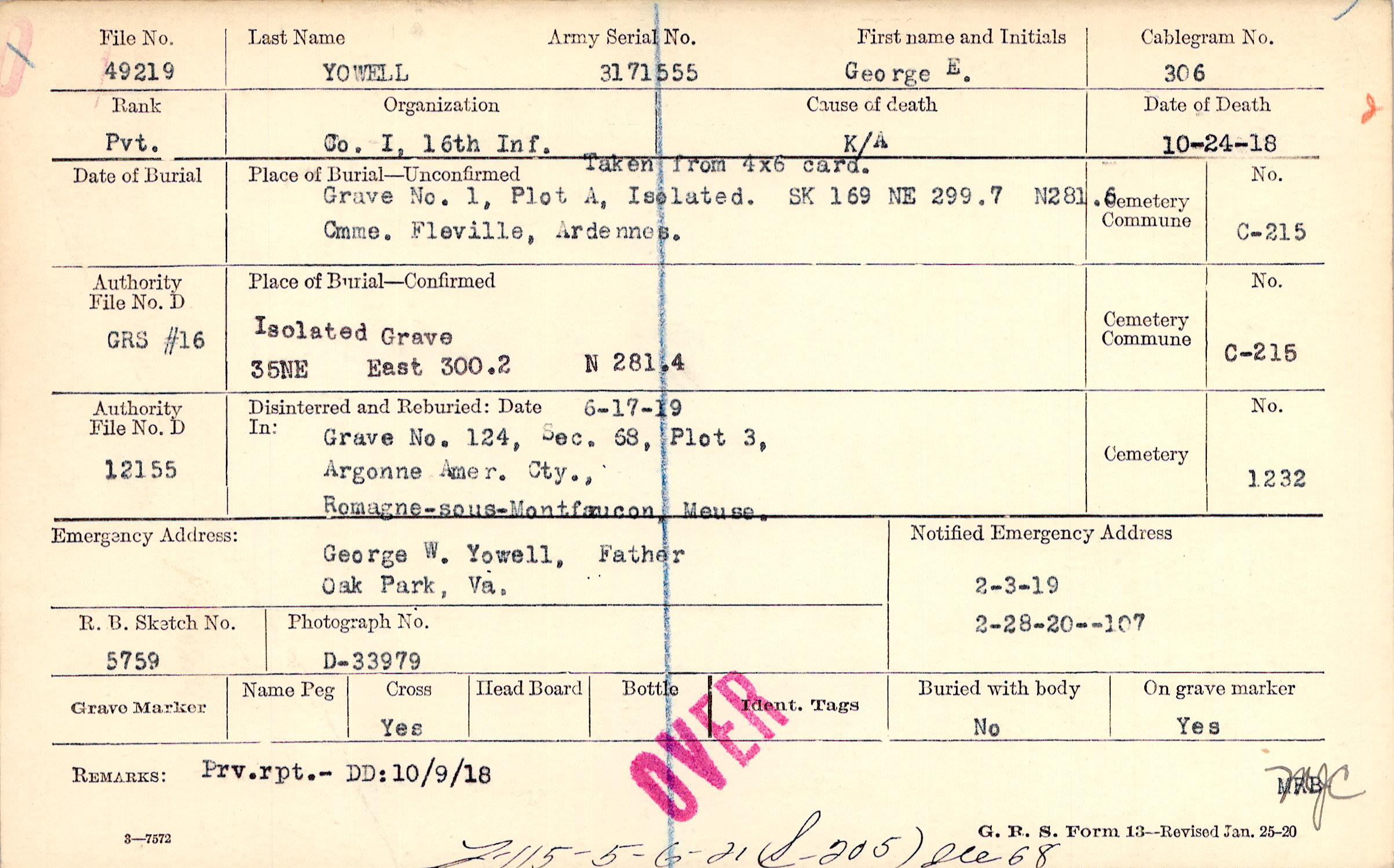 Grave 124, Section 68, Plot 3, Argonne American Cemetery, Romagne-sous-Montfaucon, Meuse
