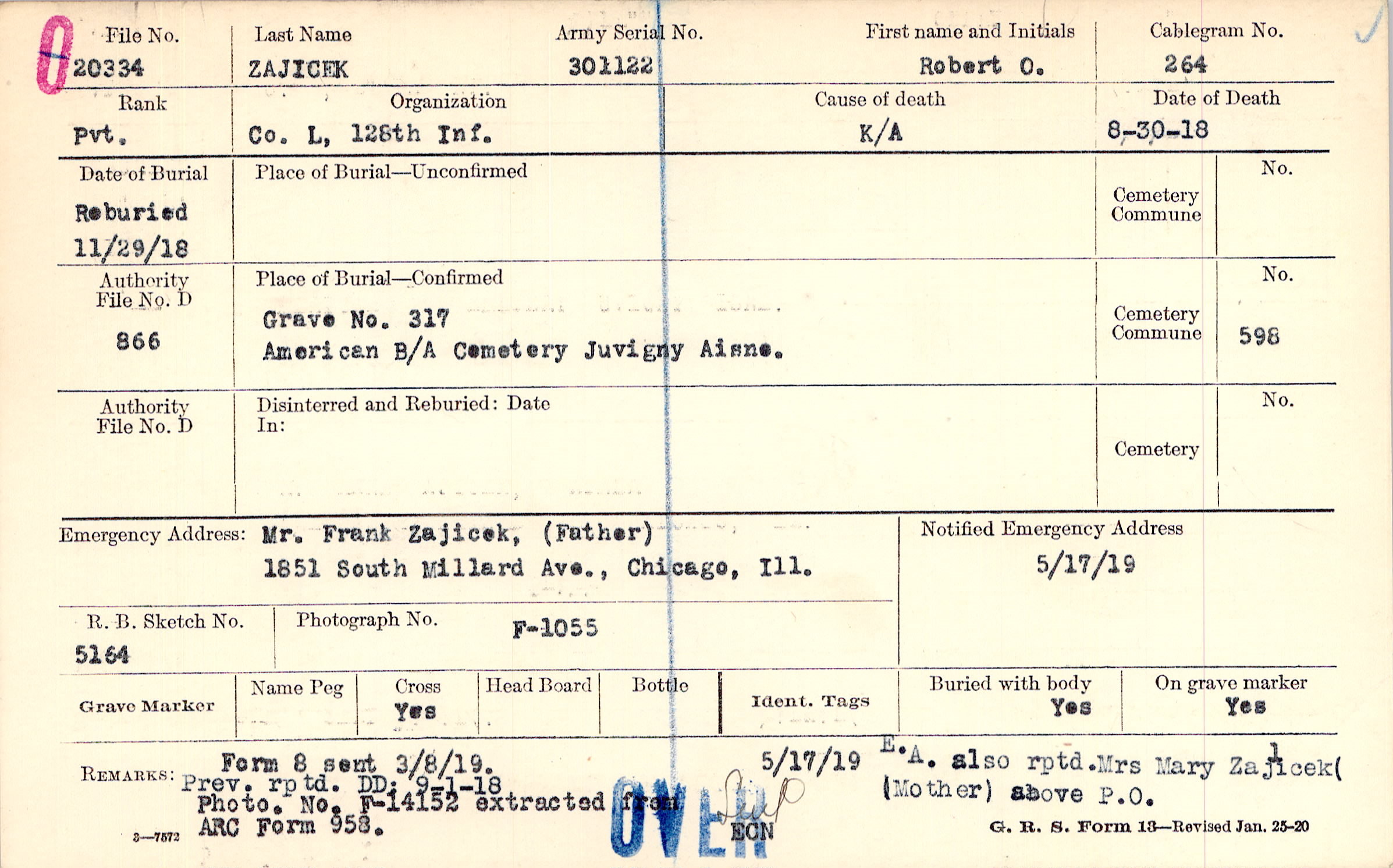 Mr. Frank Zajicek, (Father), 1851 South Millard Ave., Chicago, Ill.