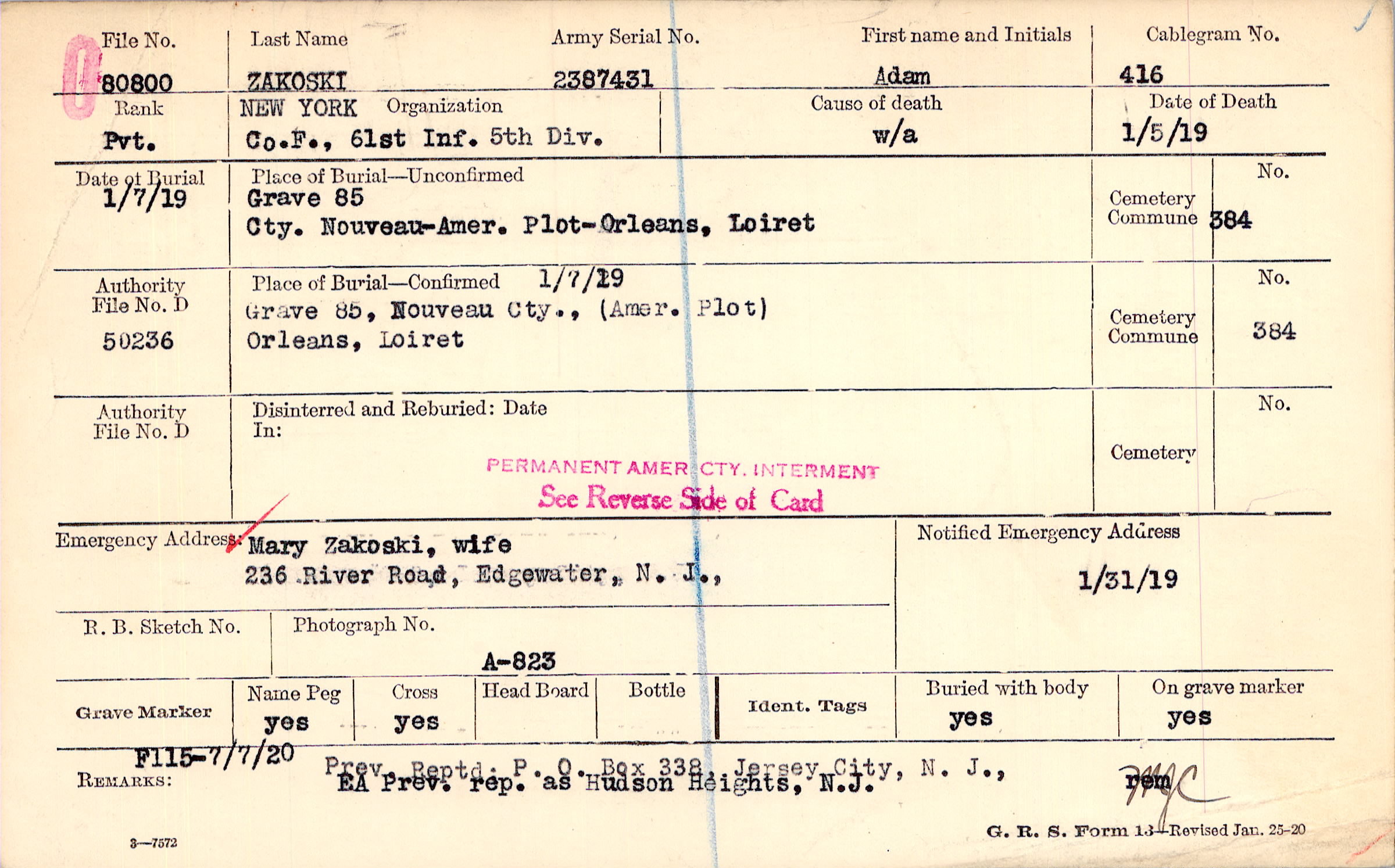 1/7/19,Grave 85, Nouveau Cty., Amer. Plot, Orleans, Loiret