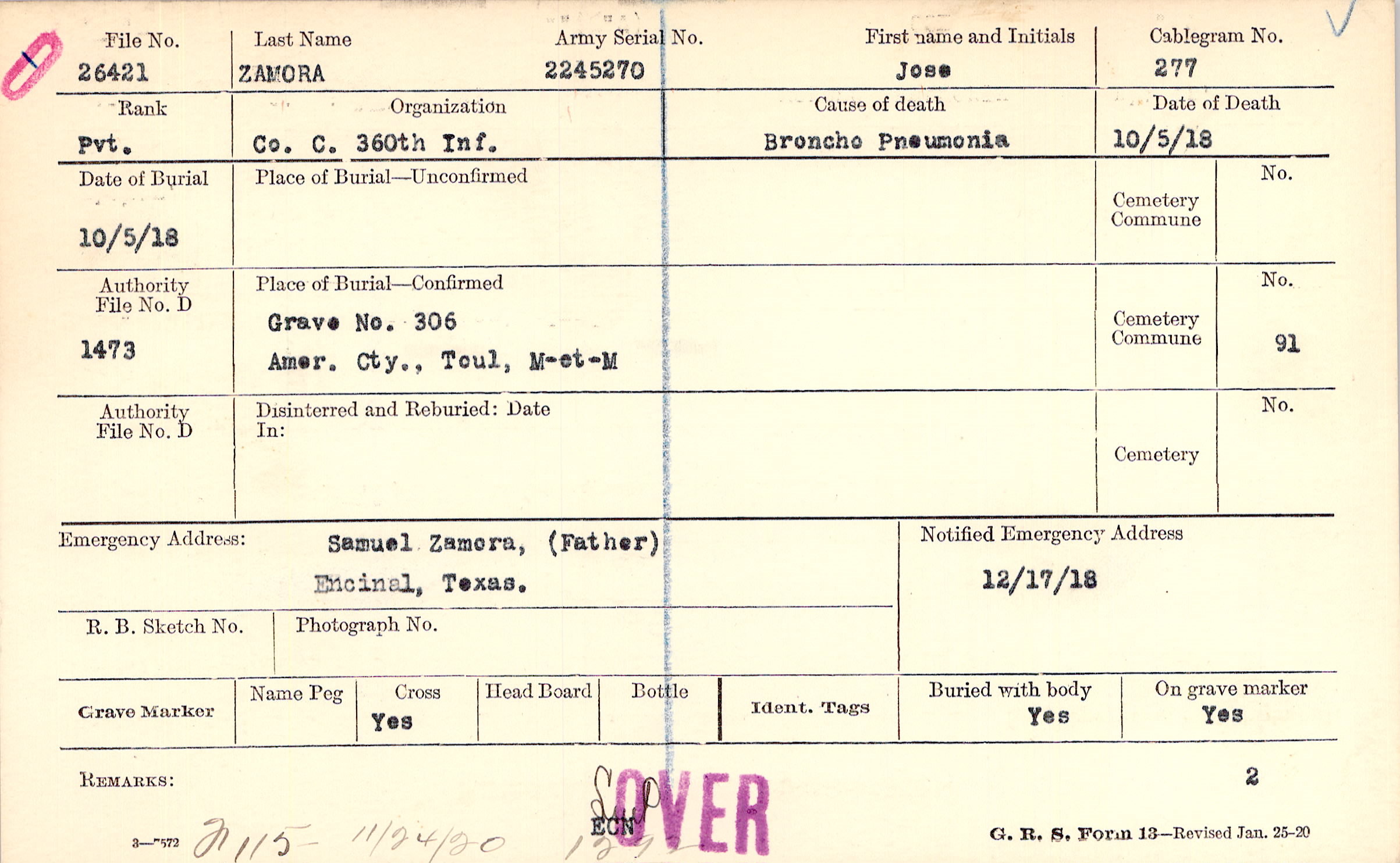 Grave 306, Amer. Cty., Toul, M-et-M