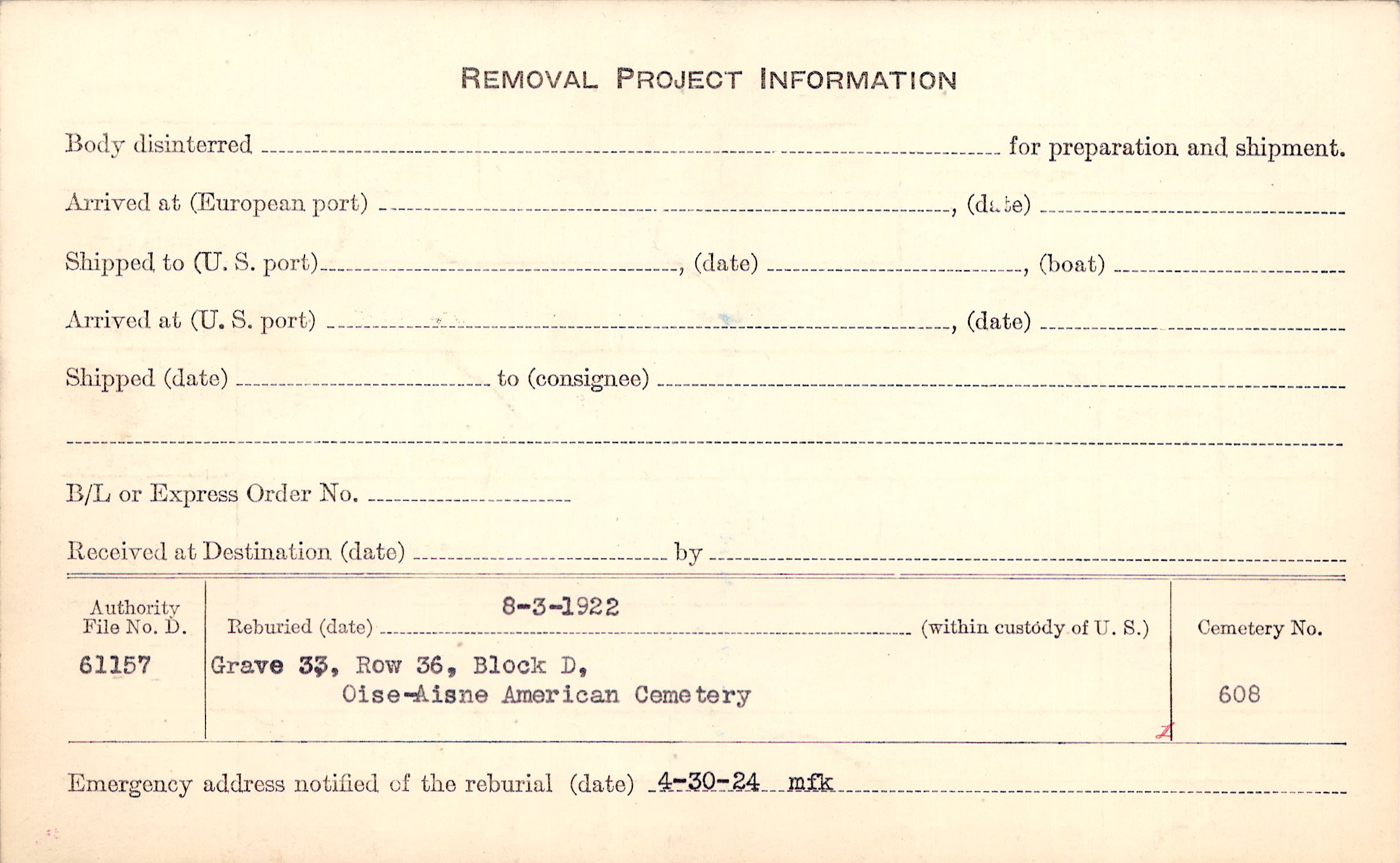 Grave 17, American Battlefield Cyt., Juvigny, (Aisne)