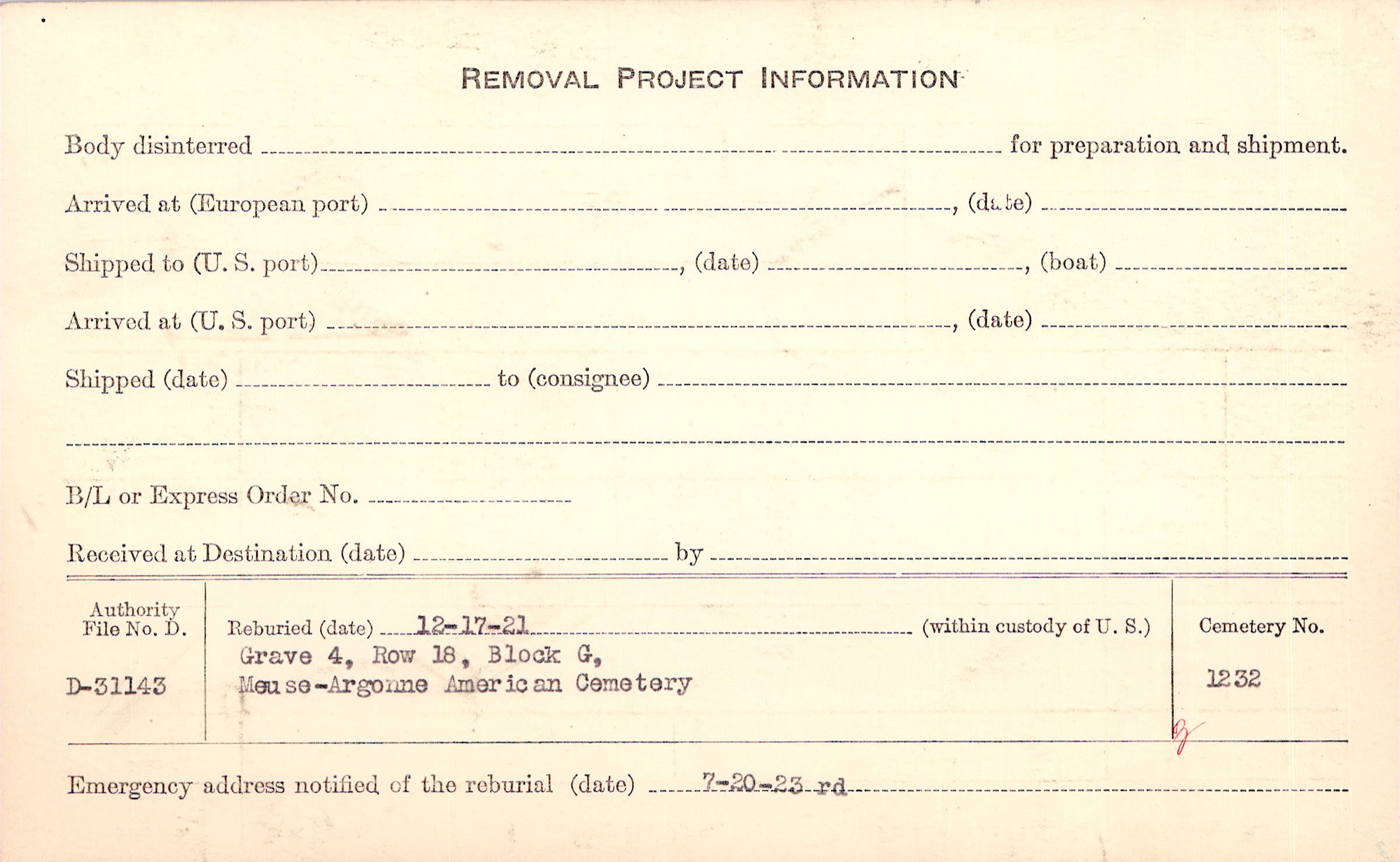 | Permanent Burial in Foreign Cemetery |
