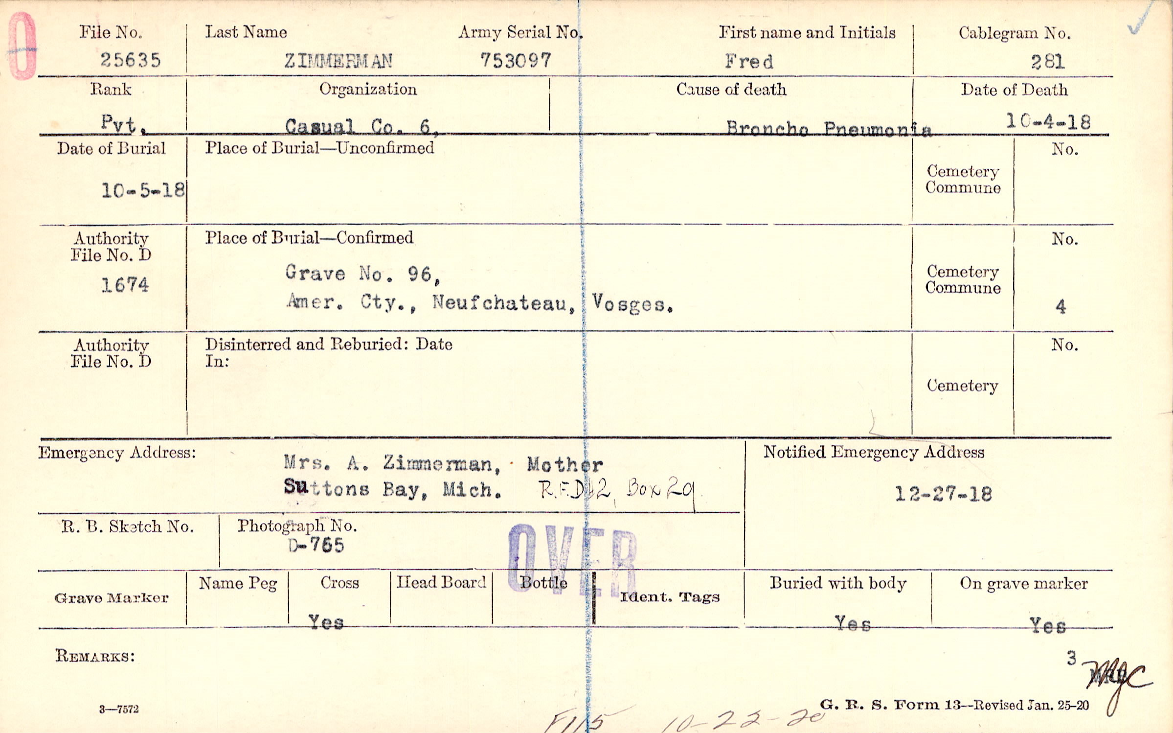 Grave 96, Amer. Cty., Neufchateau, Vosges.