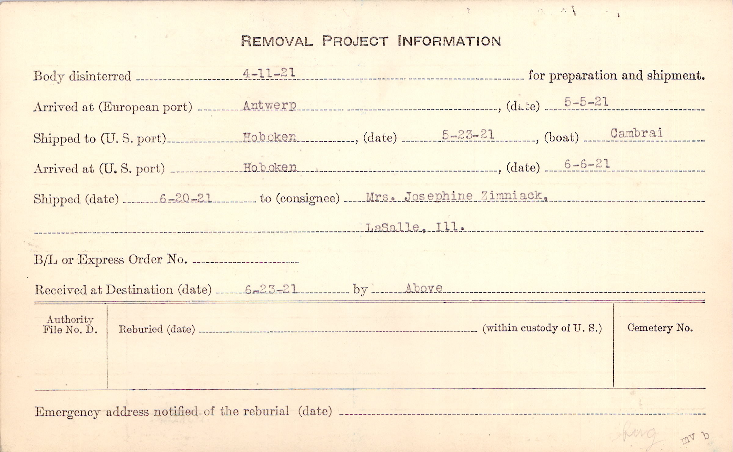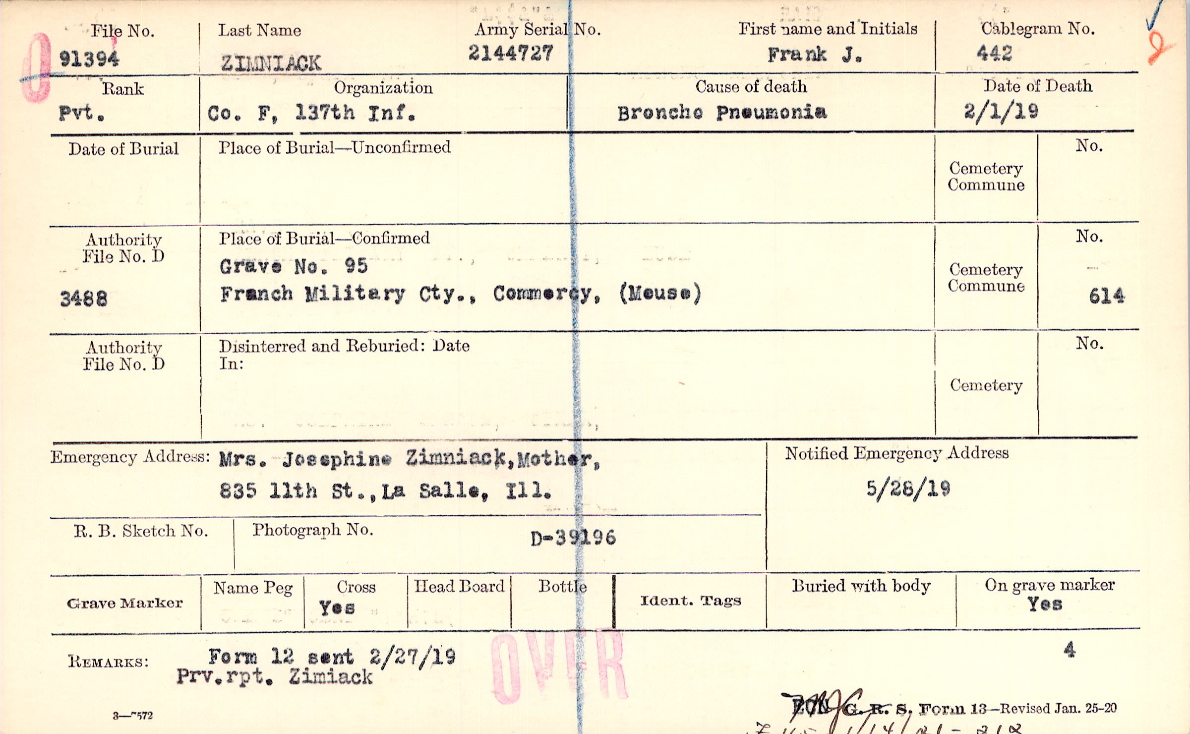 Mrs. Josephine Zimniack (Mother), 835 11th St., La Salle, Ill.