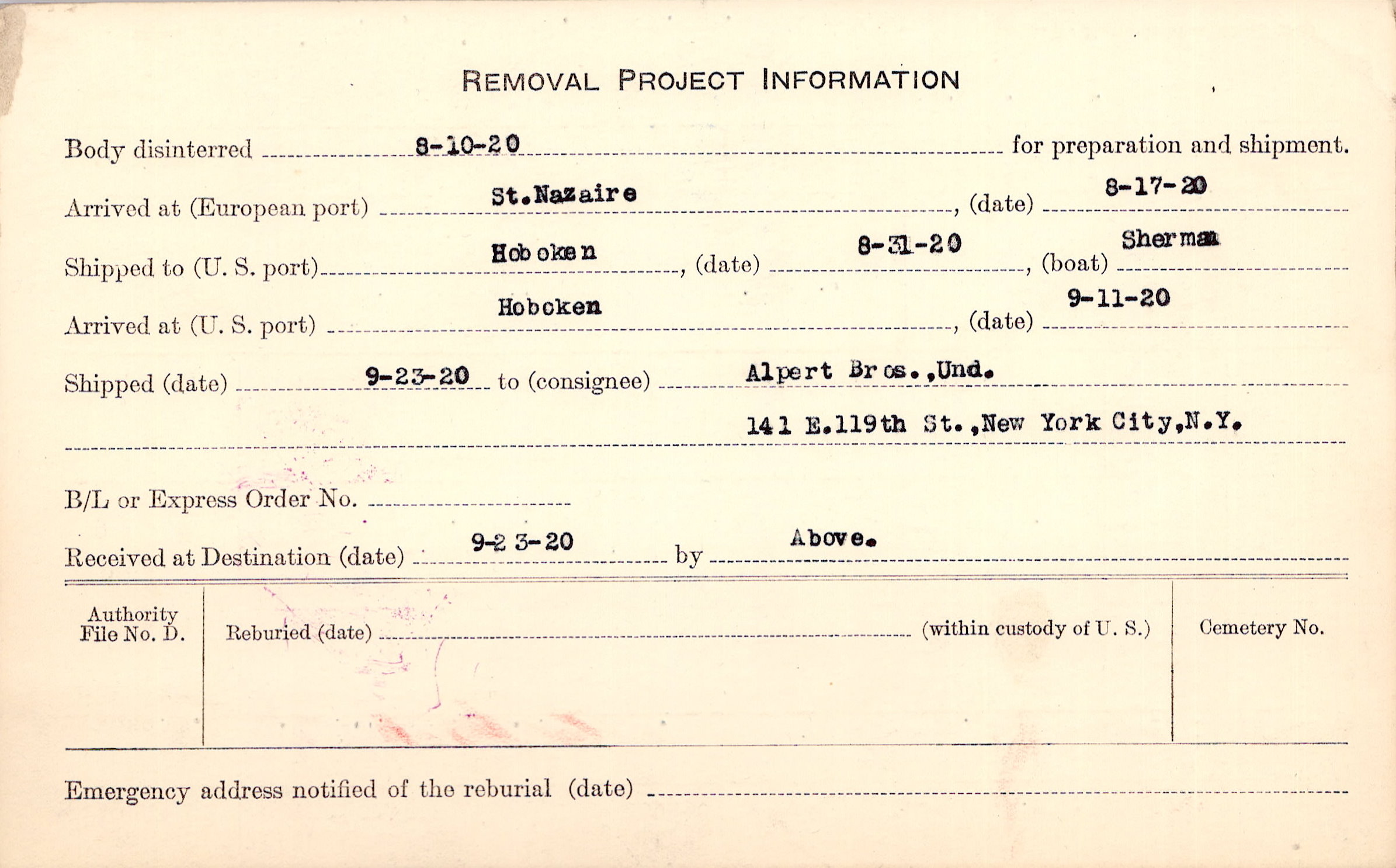 to Alpert Bros. Und., 141 E. 119th St., New York City, N.Y.