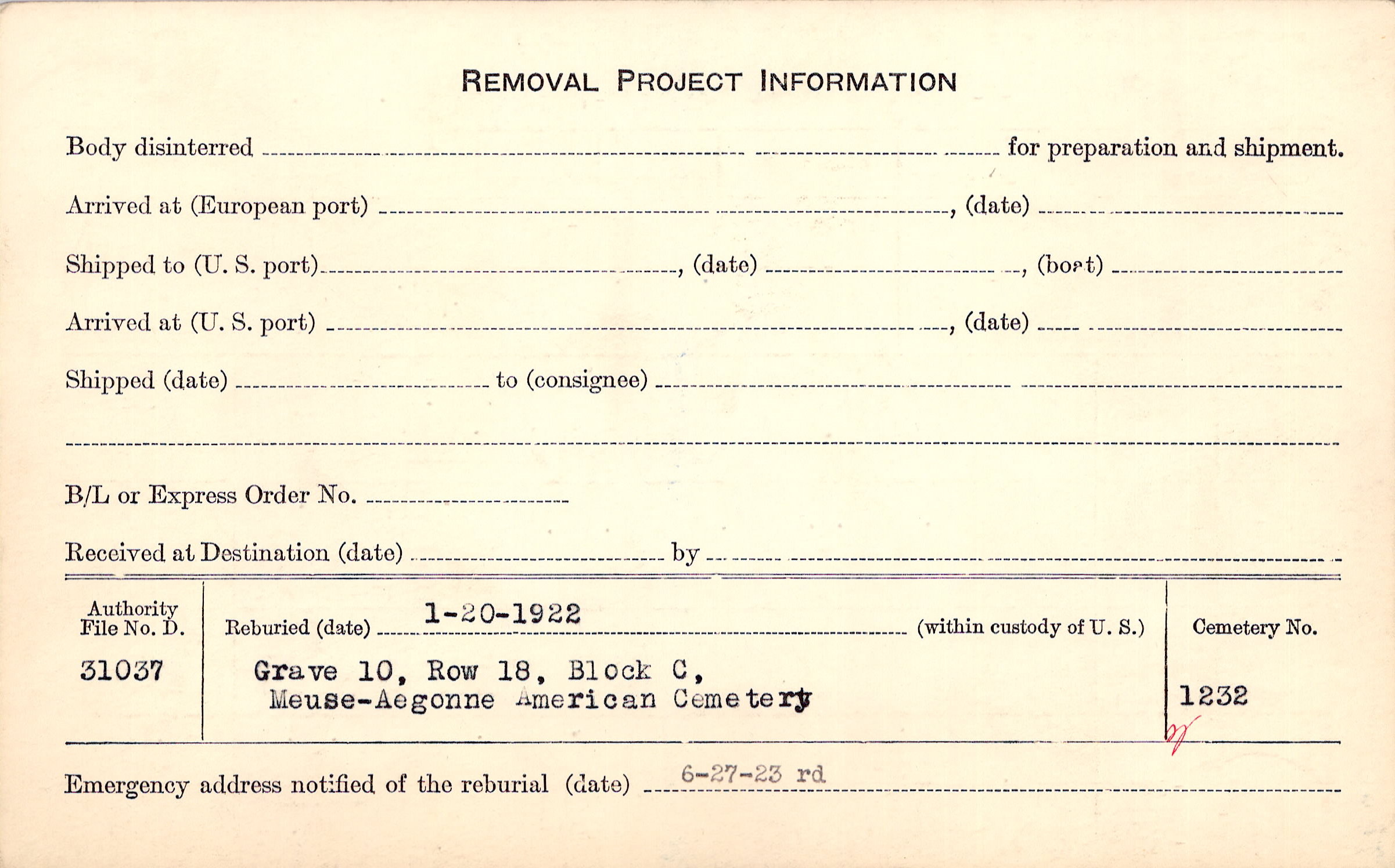 | Permanent Burial in Foreign Cemetery |