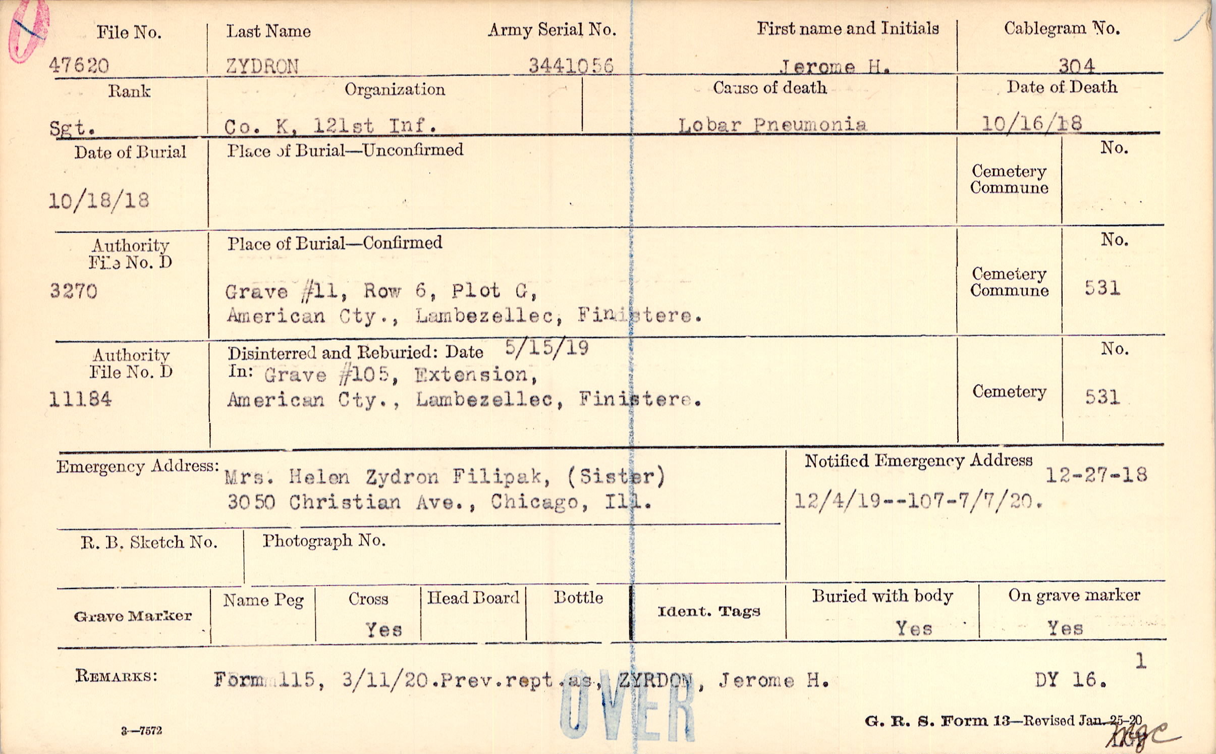 Grave 105, American Cemetery, Lambézellec, Finistère, Extension