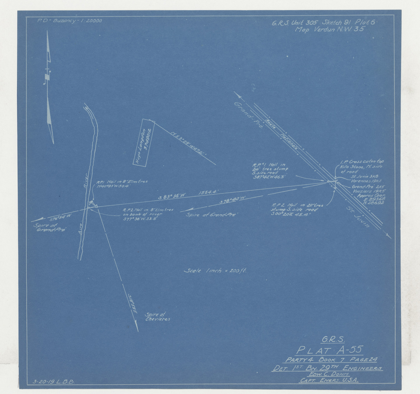 Place of Burial (confirmed): Grave 4, Isolated, Cmne Grand Pre, Ardennes, 35 N. W.