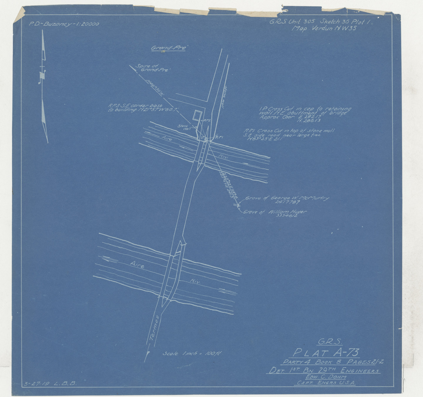 Place of Burial (confirmed): Grave , Isolated, Cmme Grand Pre, Ardennes, Sht. 35 NW