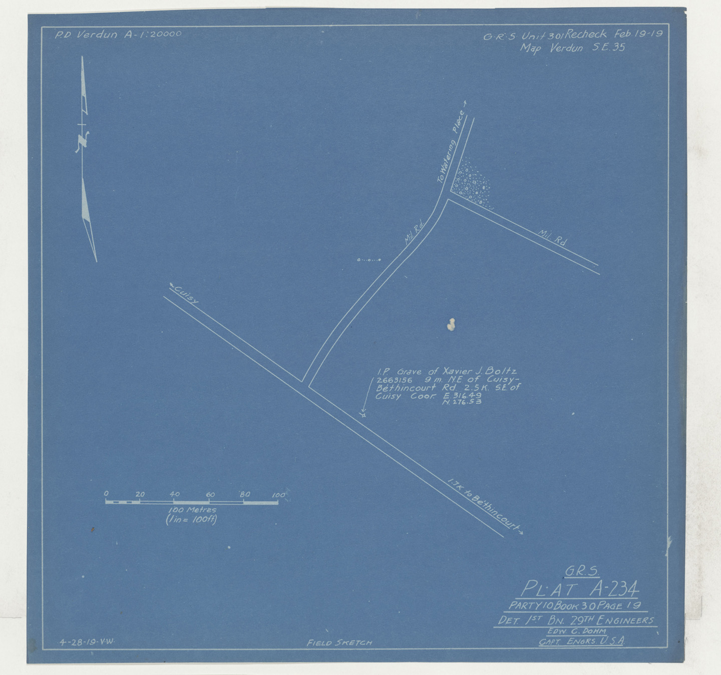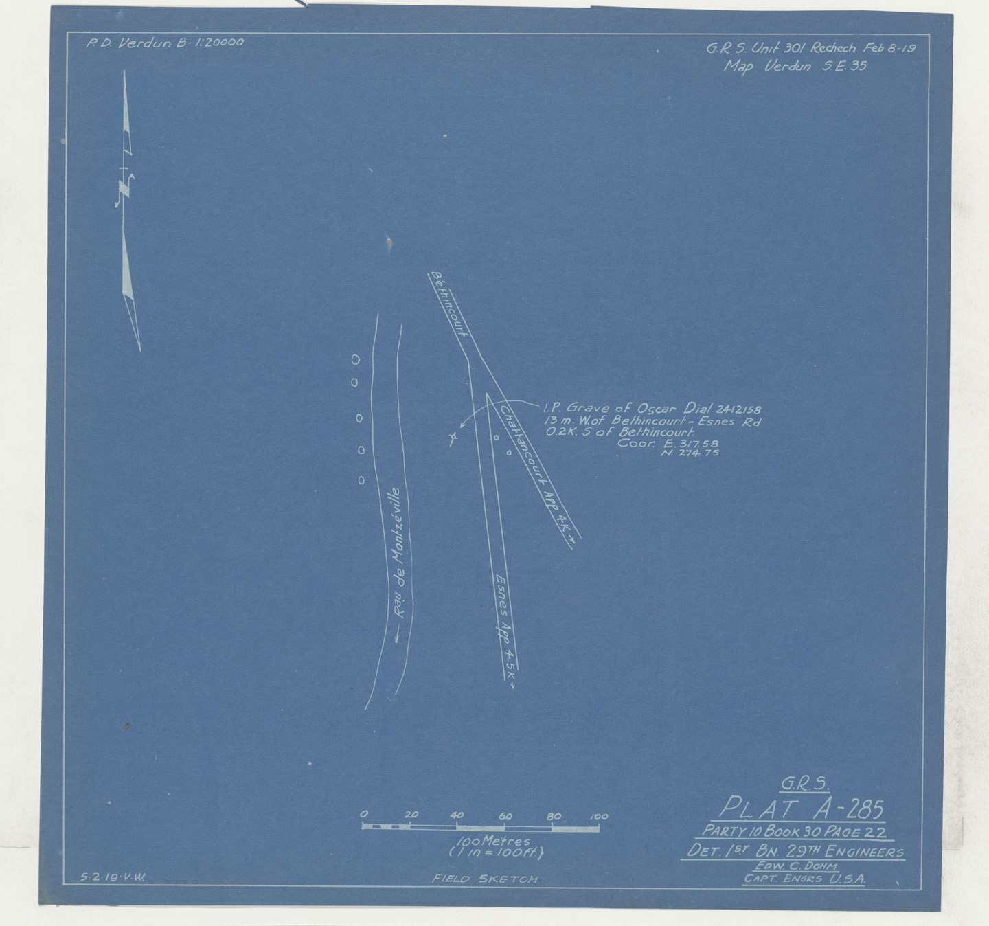 Place of Burial (confirmed): Isolated Grave Unkn., Commune, Bethincourt, Meuse., 35 SE